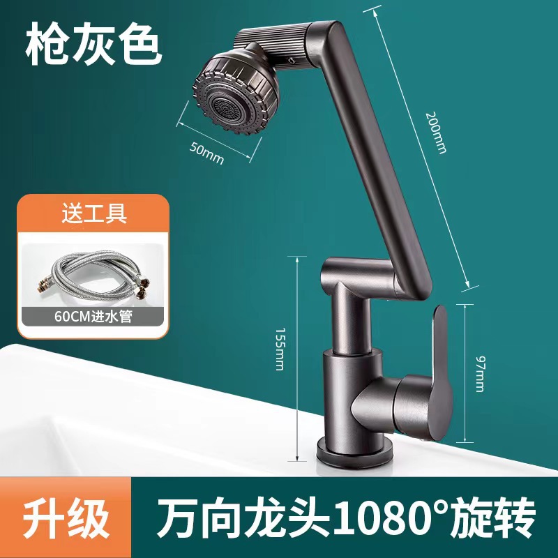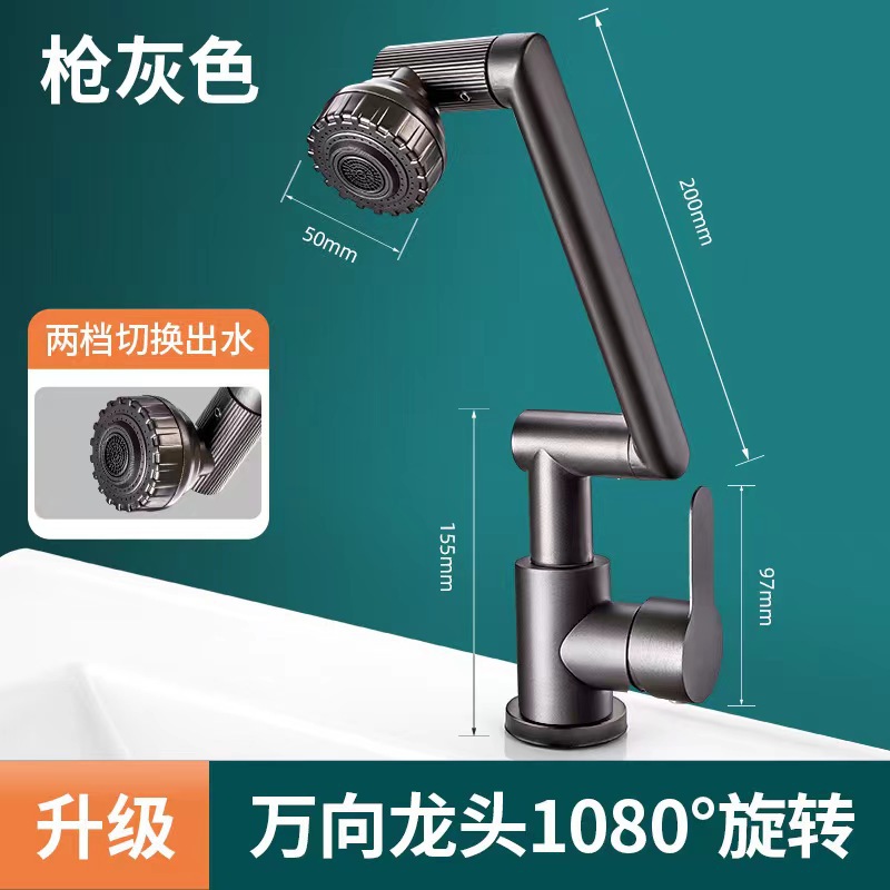 Gun Gray Stainless Steel-360 Degrees Four Rotatable-Second Gear Adjustable Hot and Cold Water
