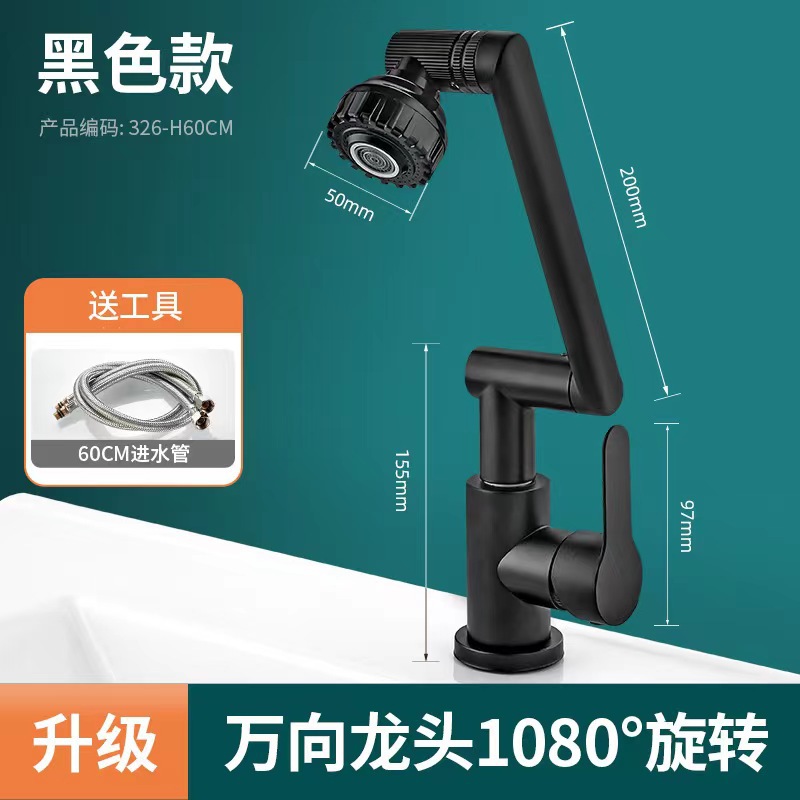 Black Stainless Steel Single Cold-360 Degrees Four Rotatable-80cm Inlet Pipe
