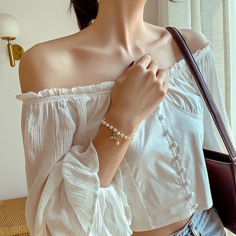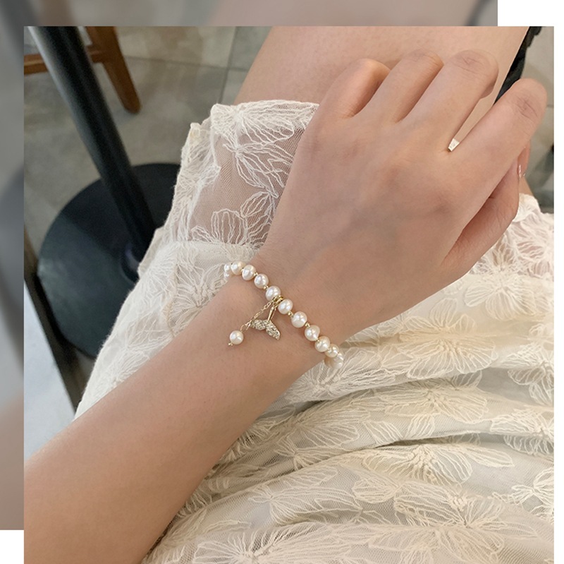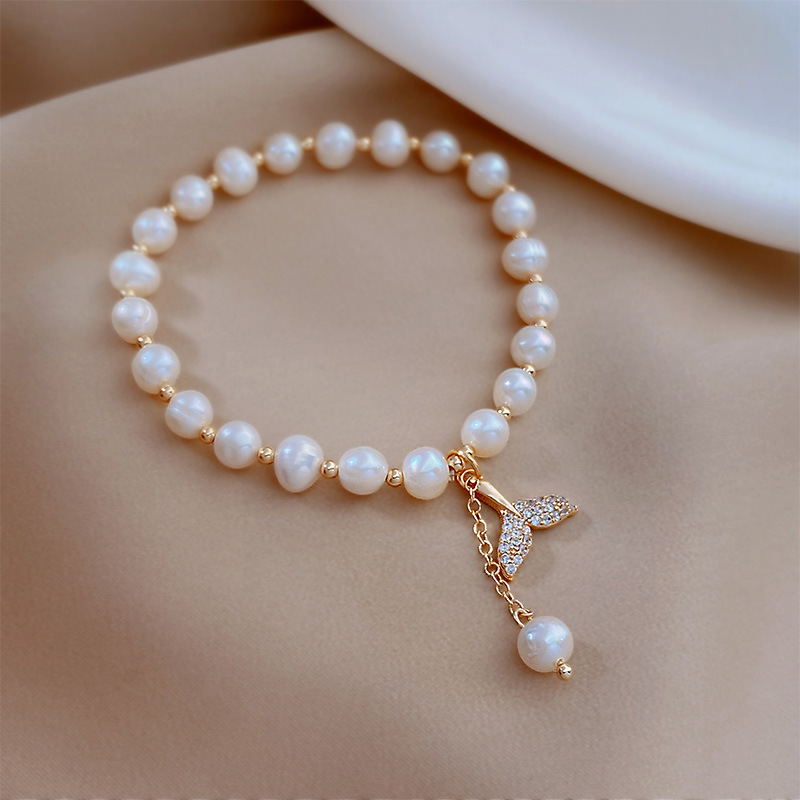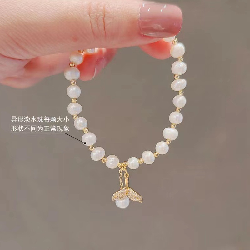 Natural Pearl Gold Plated Full Zirconium Fishtail Bracelet Mori Style Ins Style Girlfriends Bracelet Exquisite Design Women's Bracelet