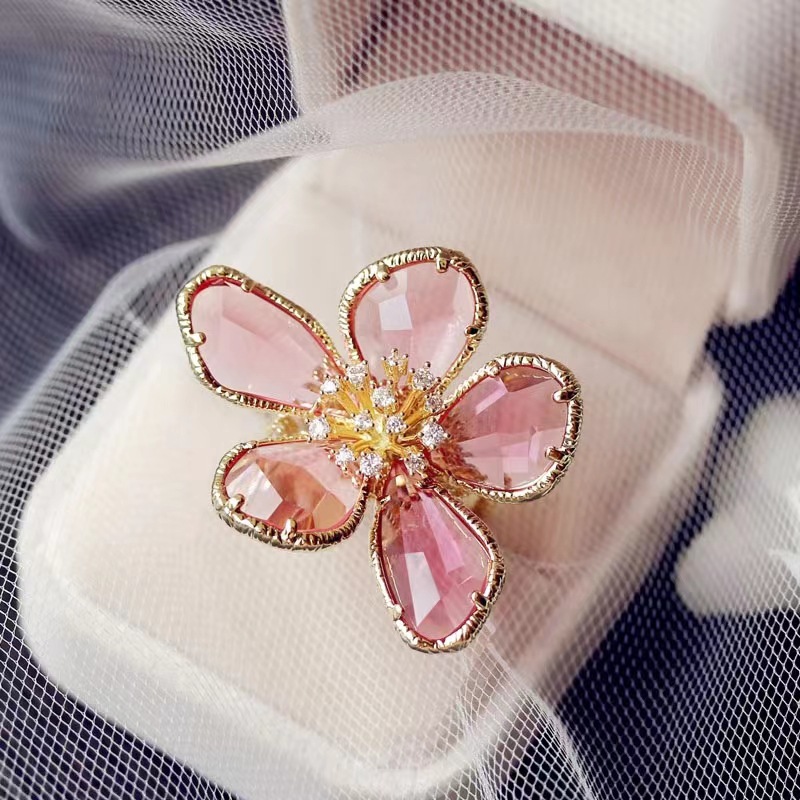 Diamond Crystal Ice Flower Ring European and American Style Elegant Open Adjustable Ring Creative High Sense Luxury Women's Tail Ring