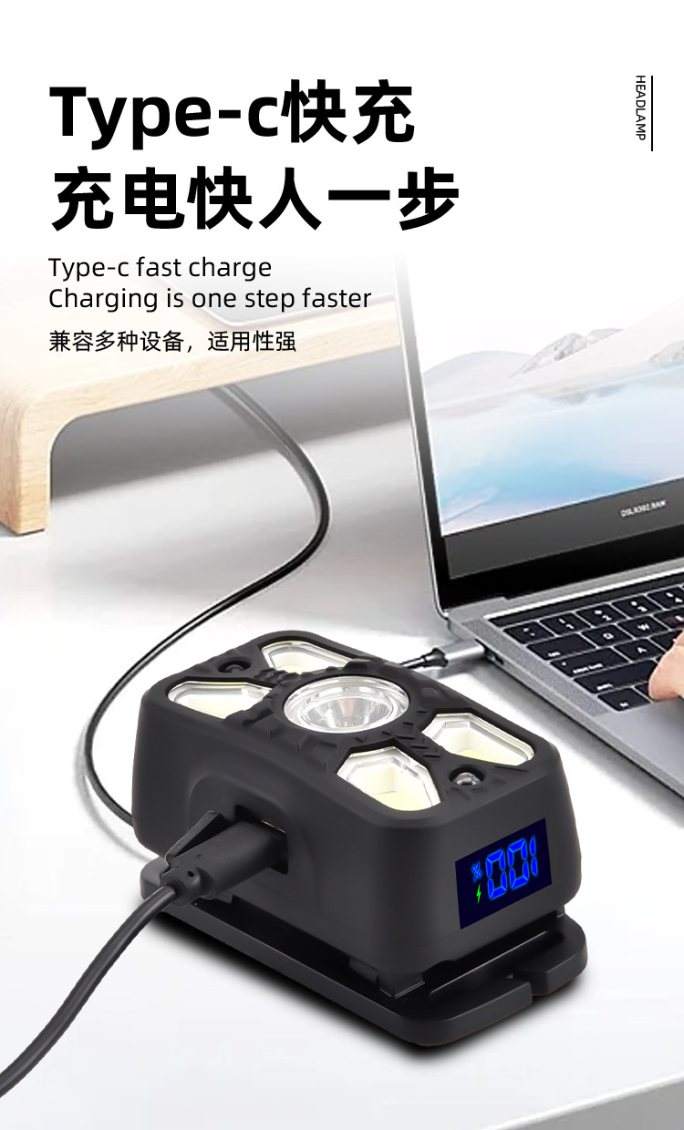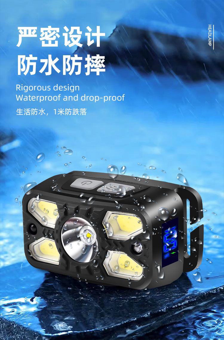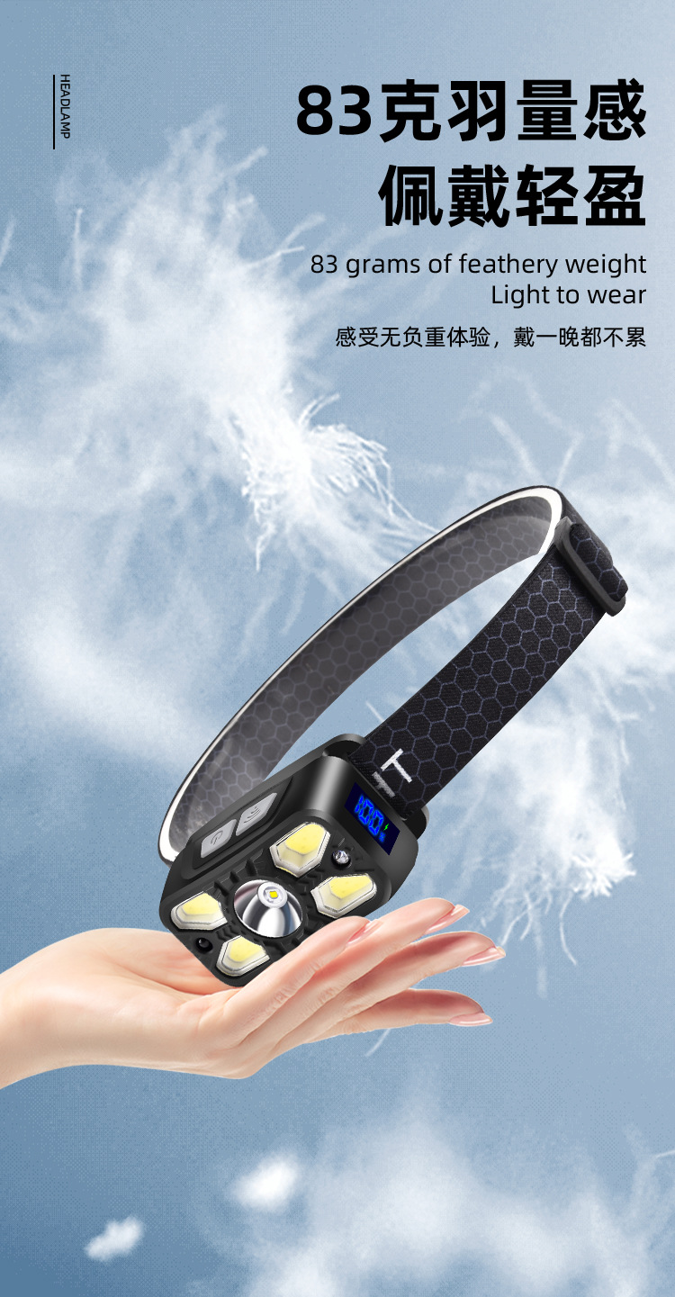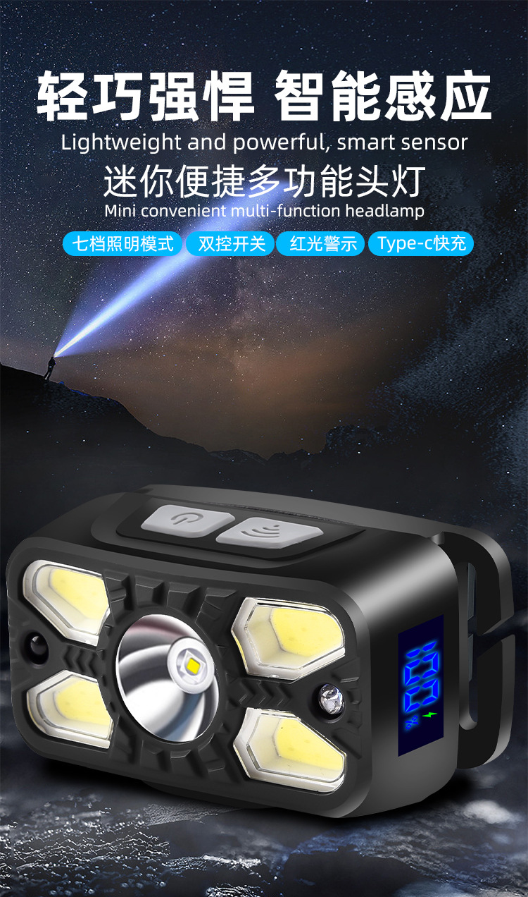 Digital Display Sensor Headlamp Lightweight Head-Mounted Lighting Lamp Outdoor Rechargeable Super Bright Headlamp