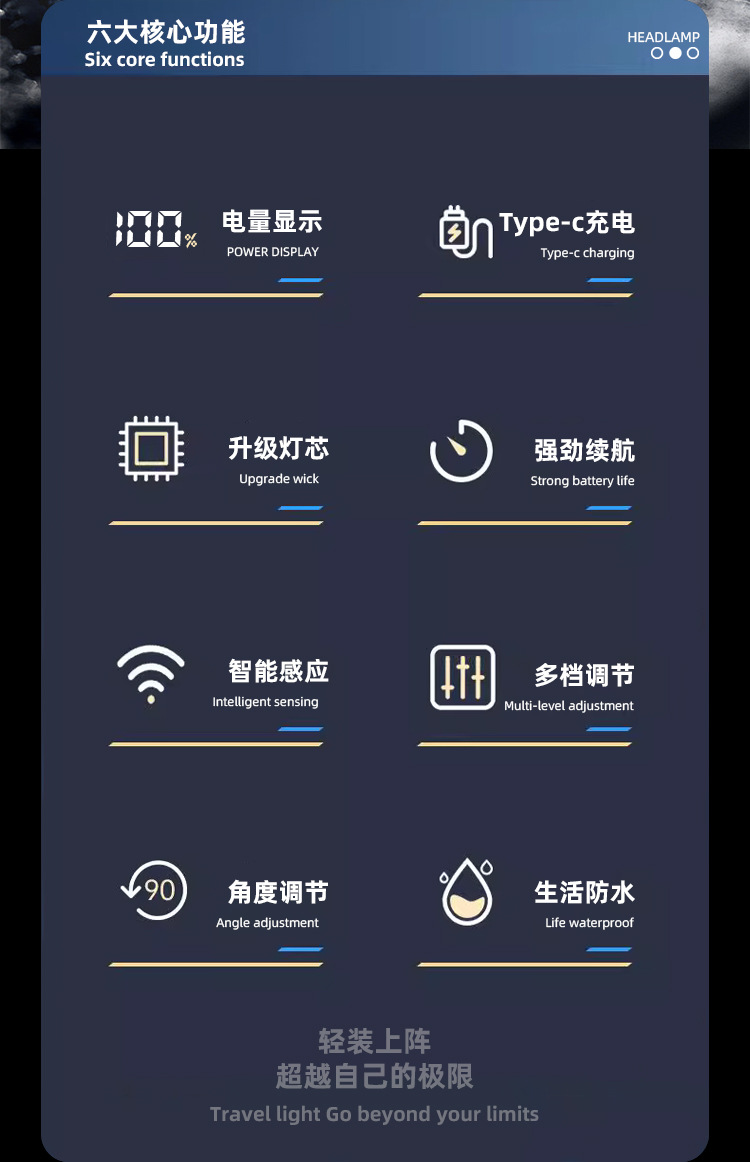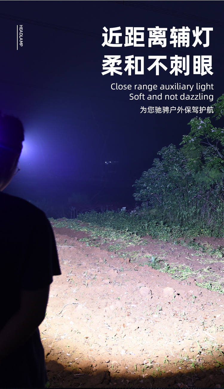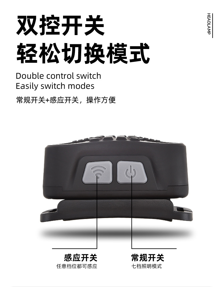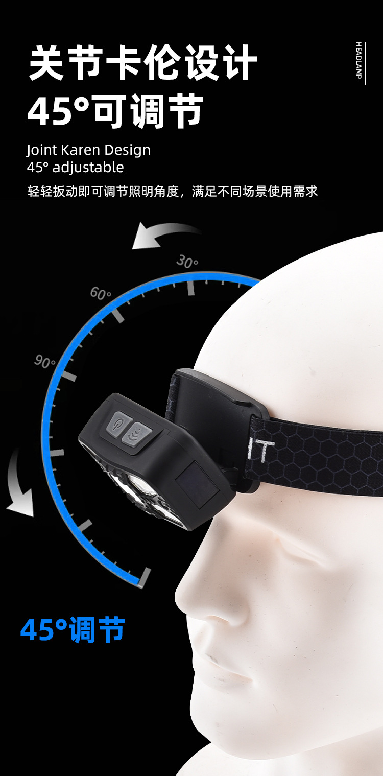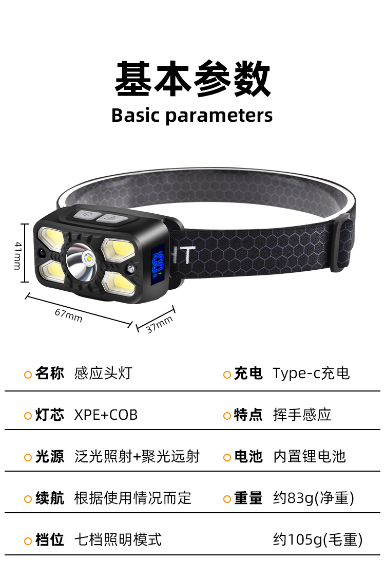 Digital Display Sensor Headlamp Lightweight Head-Mounted Lighting Lamp Outdoor Rechargeable Super Bright Headlamp