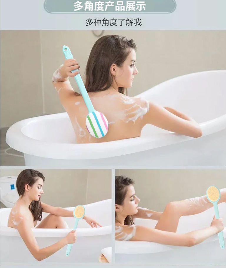 40cm Bath Brush Double-Sided Two-in-One Bath Back Rub Artifact Long Back Bath Gadget Back Scratching Back Rubbing Back