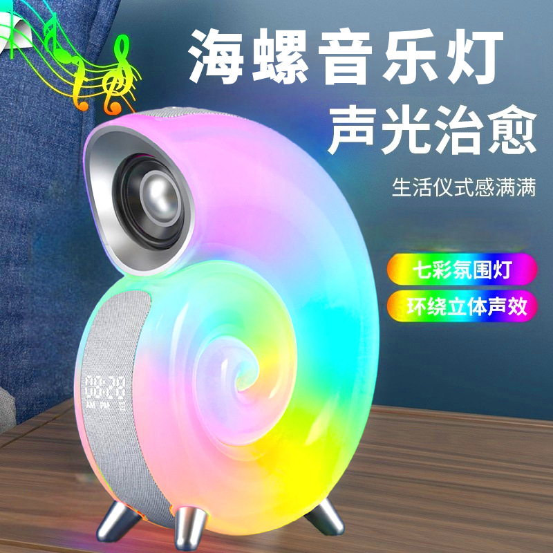 Conch Music Table Lamp Romantic Bedroom Pickup Clock Wake-up Light Smart Bluetooth Speaker Colorful Ambience Light