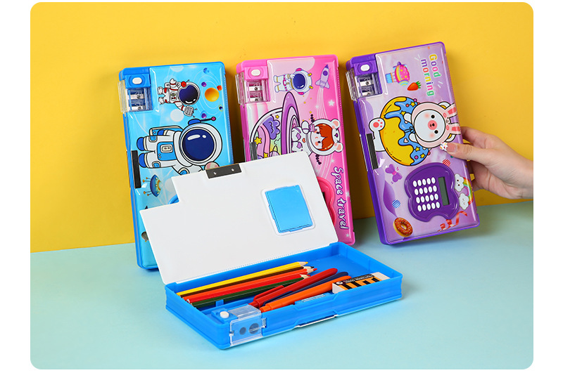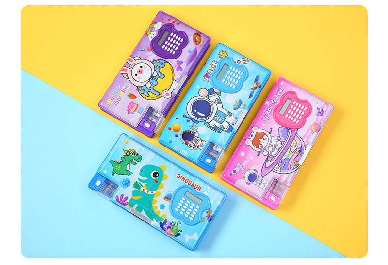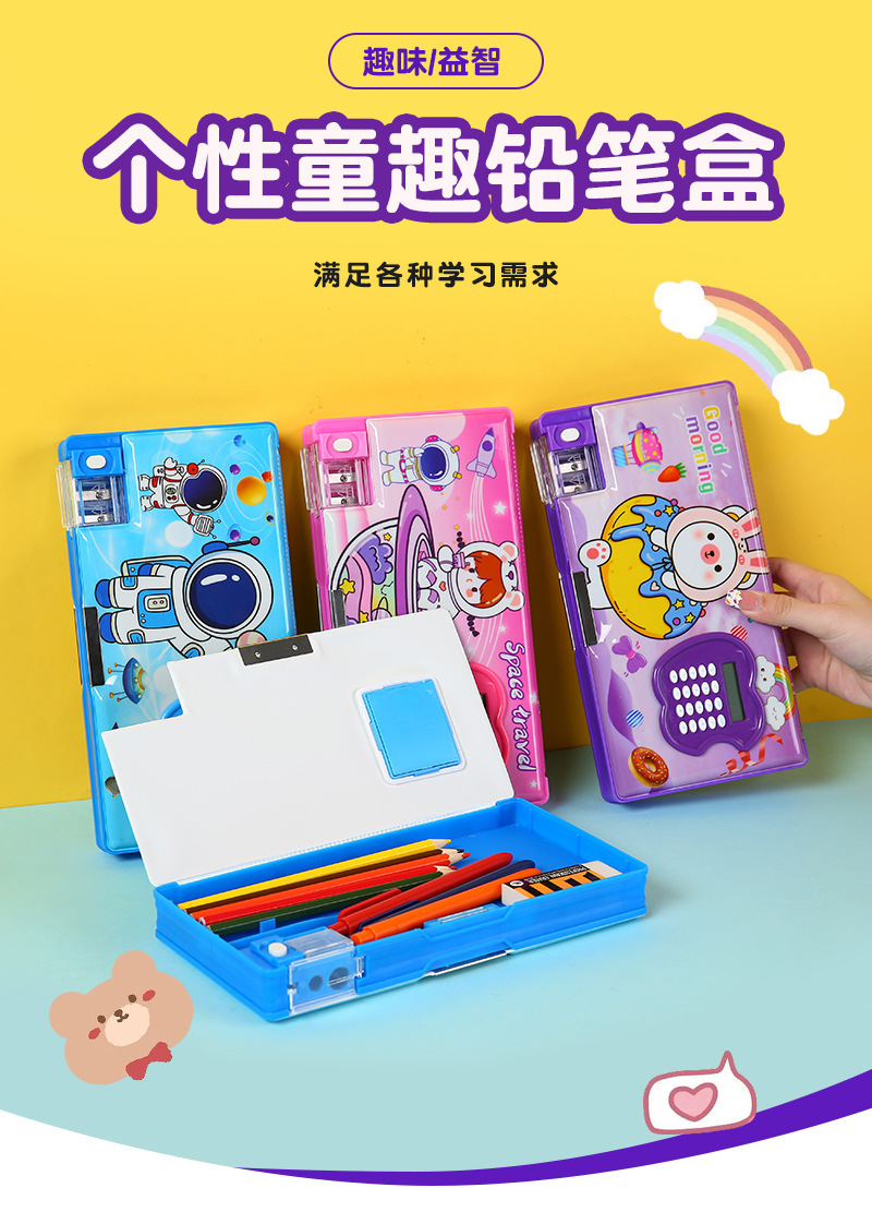 large capacity multifunctional calculator pencil box wholesale good-looking double layer cartoon children's stationery box student spot