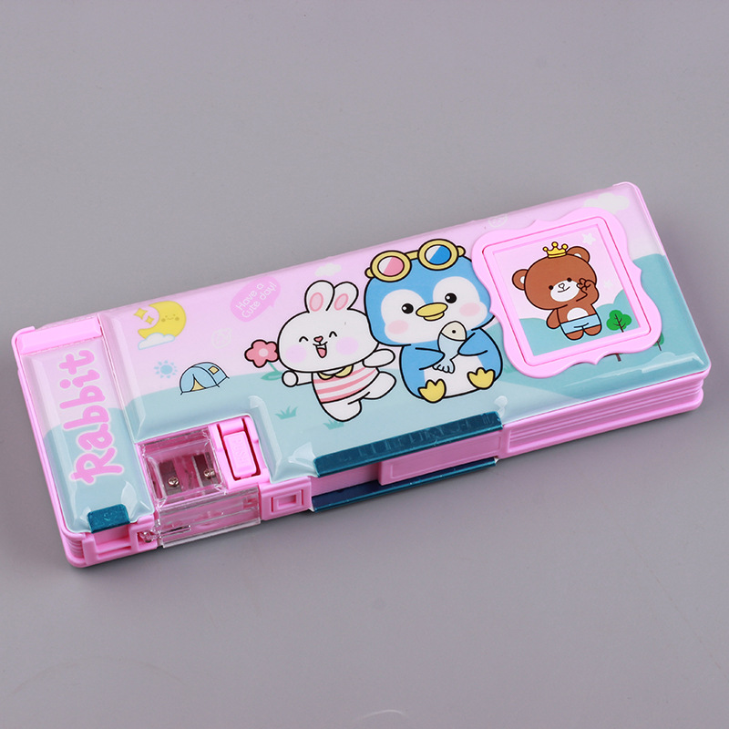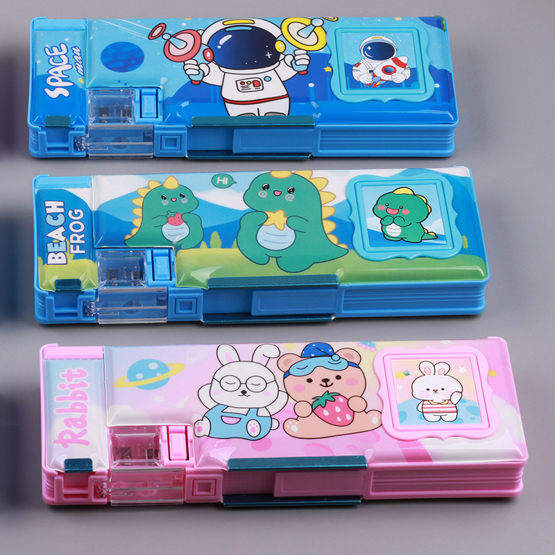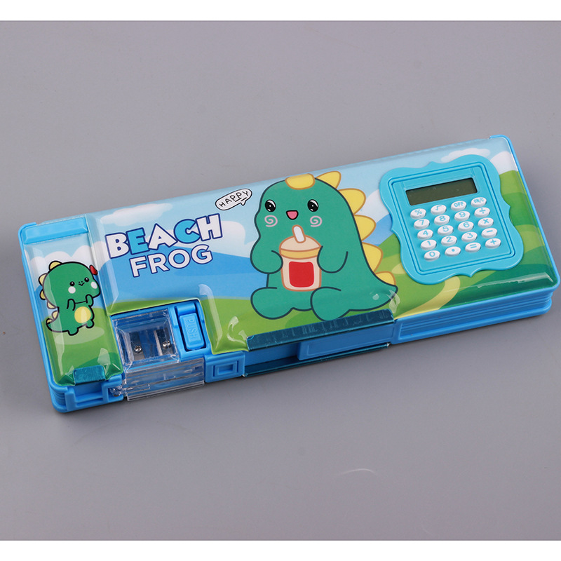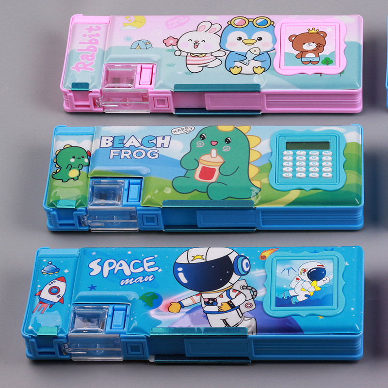 stationery box calculator korean style elementary school children cartoon double-sided stripe pencil sharpener pupils' pencil box boys and girls