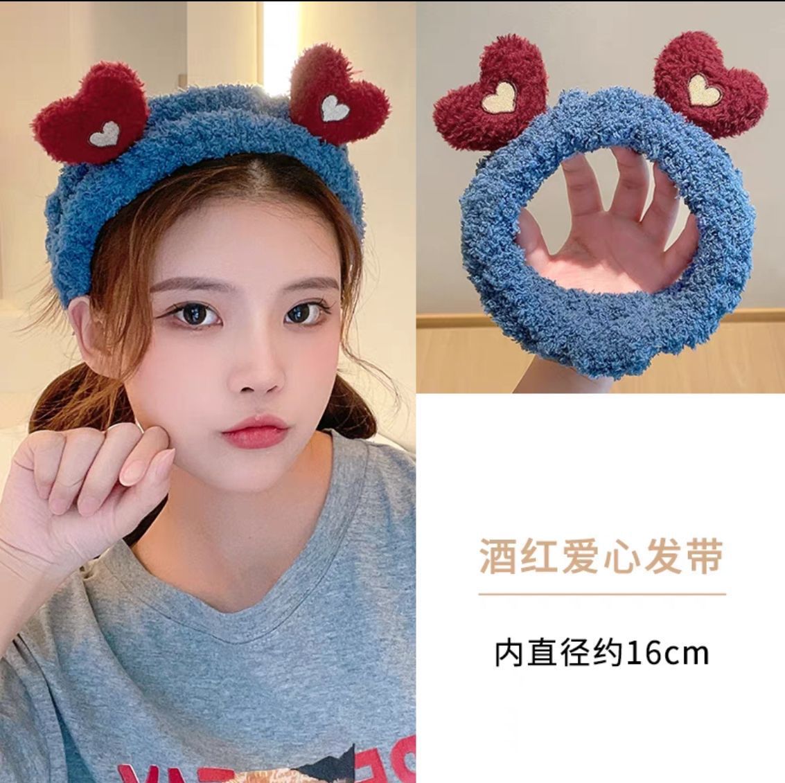 blue-plush loving heart hair band