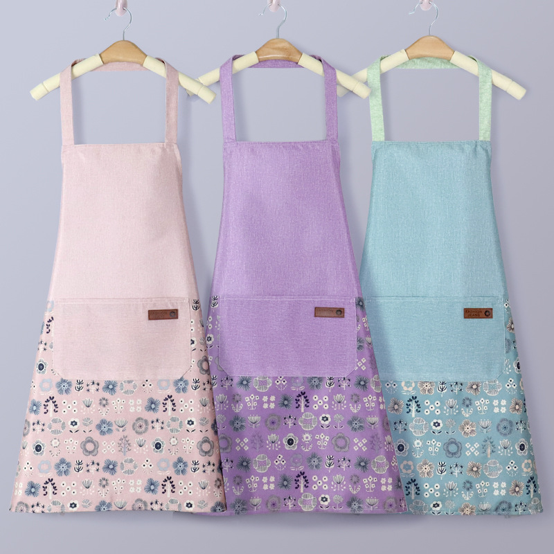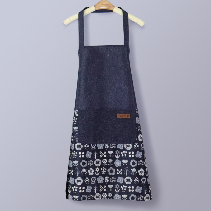 waterproof small fresh apron with pocket floral water-repellent cloth large pocket sleeveless apron oil-proof neck-hanging apron