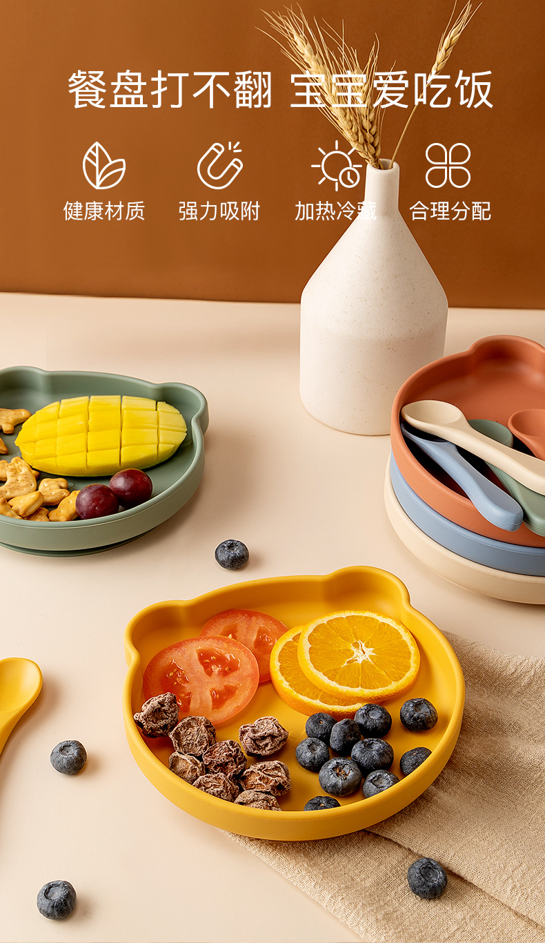 bear baby plate infant eating bowl self-eating solid food bowl integrated silica gel sucker
