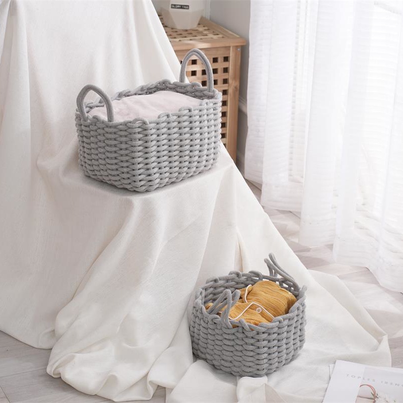 nordic instagram style hand-knitted cotton rope storage basket desktop cosmetics snacks toy key storage basket