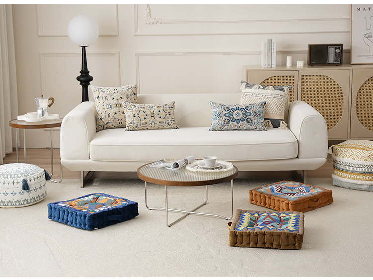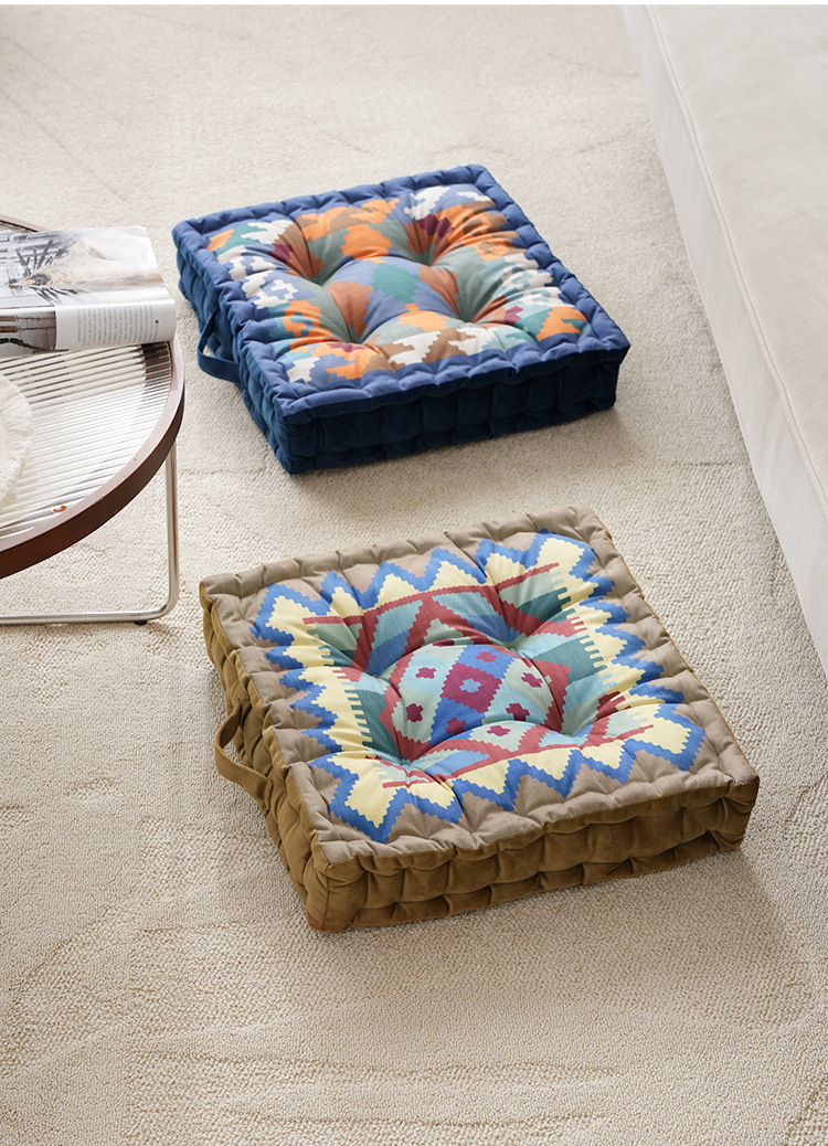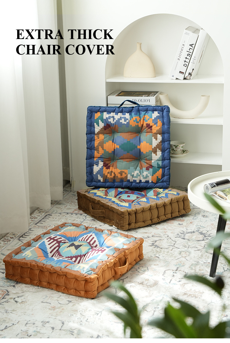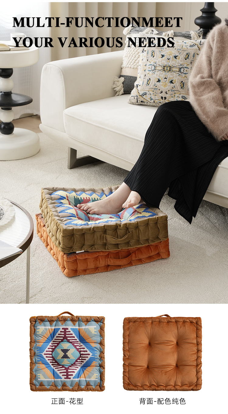 Thickened square chair pad with various styles正面:Flower Pattern, 背面:Match Solid Color