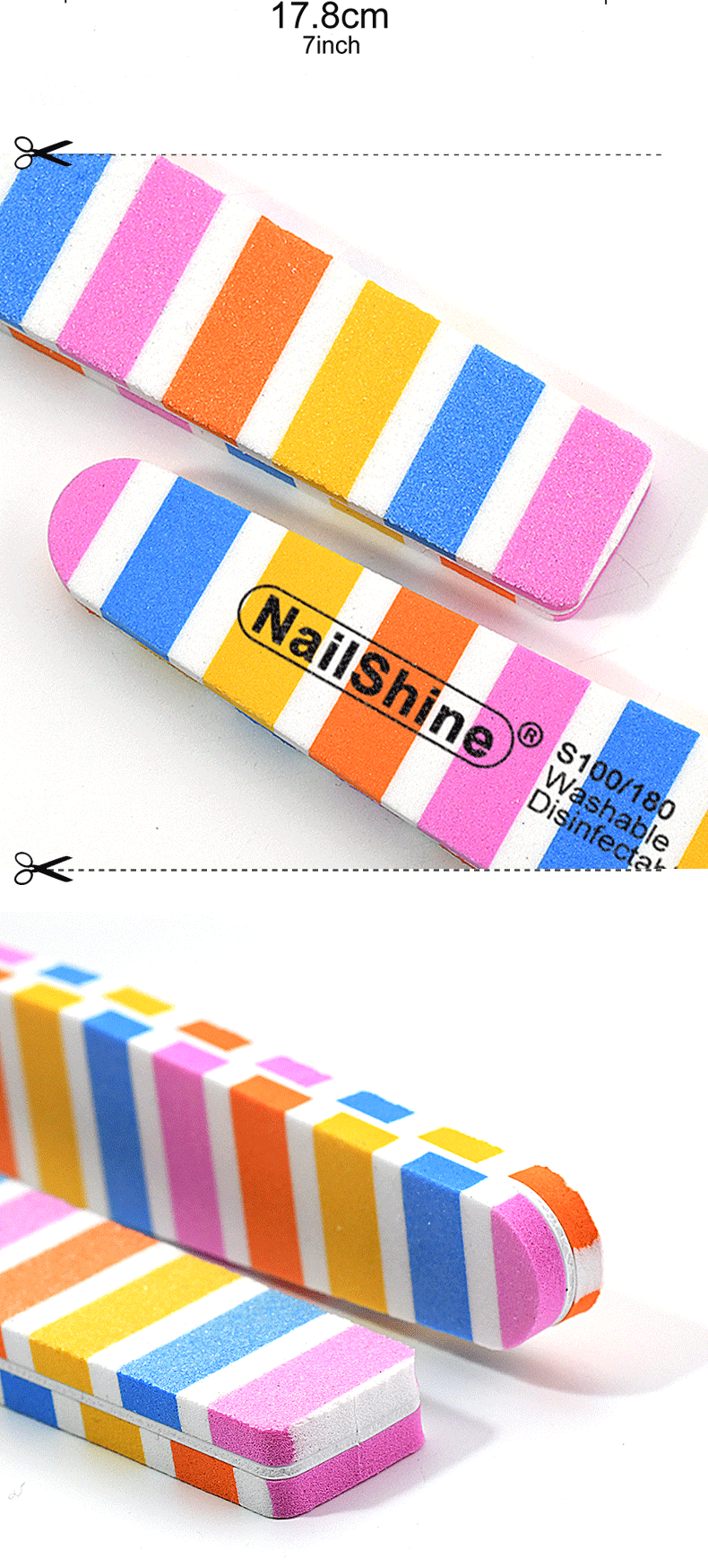 nail striped half moon sponge rub-blue and green series