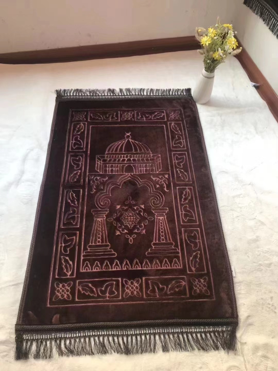Factory Direct Sales Carpet Small Size Plain Tassel Spot Embossed Prayer Mat Carpet Non-Slip Export Foreign Trade Wholesale