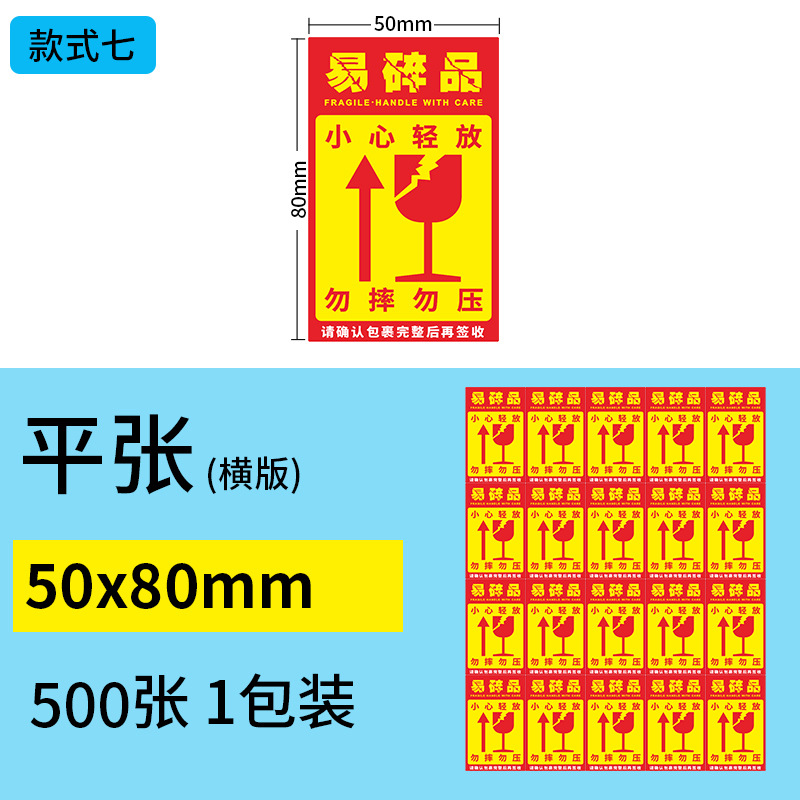 Seven Printing Copper Board Fragile 50*80 500 Stickers (Flat)