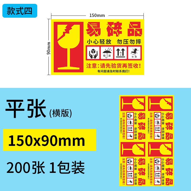 Four Printing Copper Board Fragile 150*90 200 Stickers (Flat)