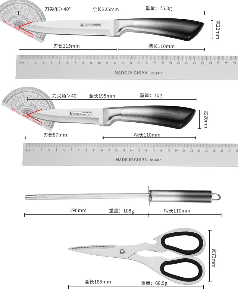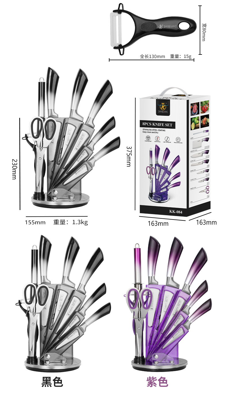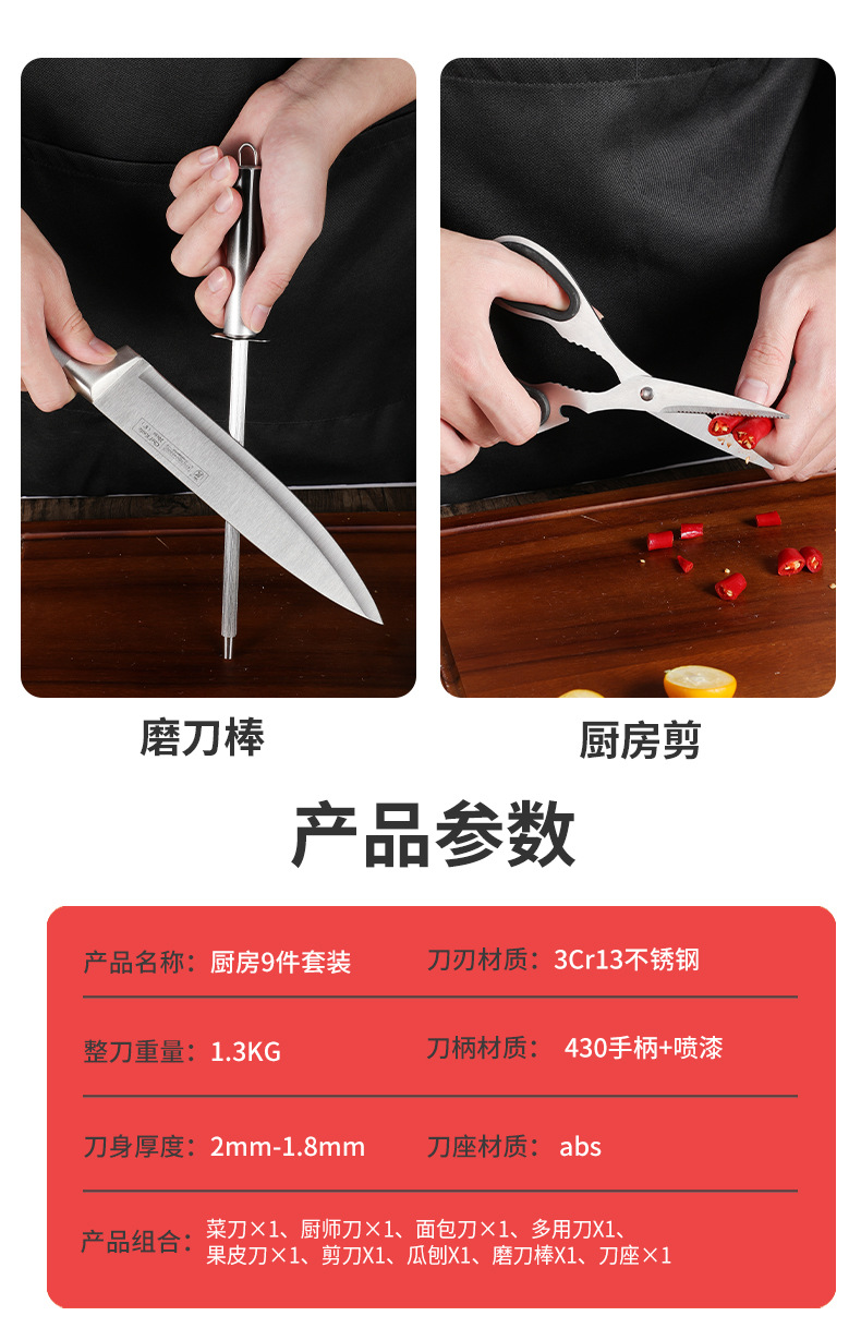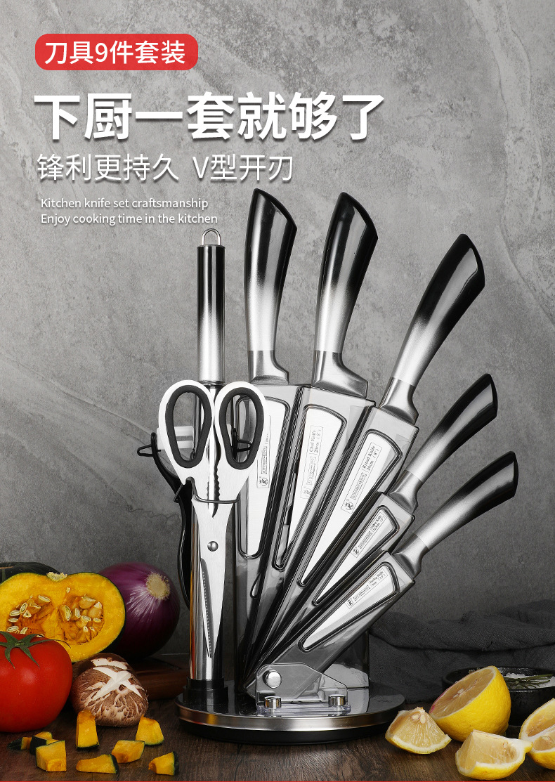 hollow handle knife suit foreign trade gradient 9-piece set knife sharp chef knife bread knife gift set knife