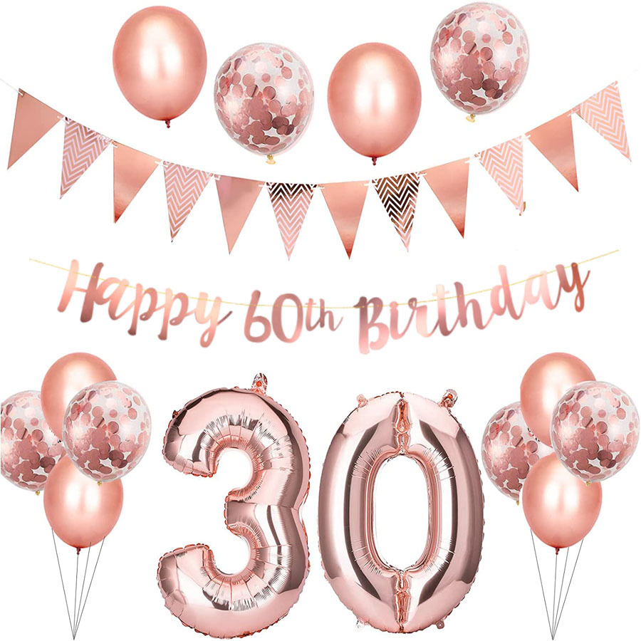【Package includes】: a set of connected birthday letters, 1 triangular flag, 2 30-inch numbers, 6 latex balls, 6 sequins, 1 ribbon