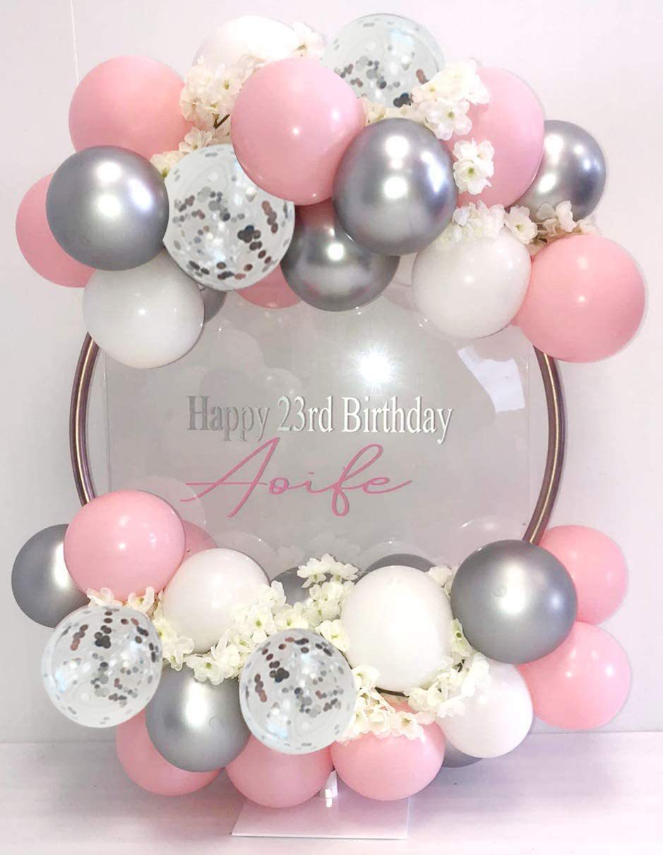 【商品名称】Pink Silver Happy Birthday Balloon