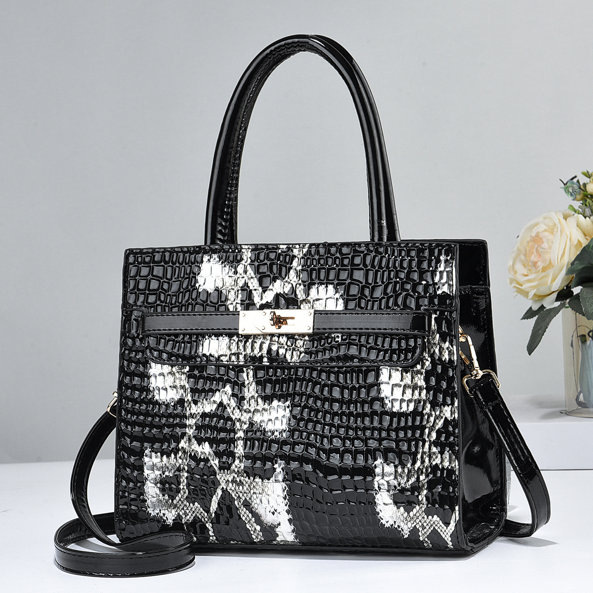 Foreign Trade Manufacturer Women's Bag New European and American Snake Pattern Personality Fashion Commuter Texture Shoulder Messenger Handbag