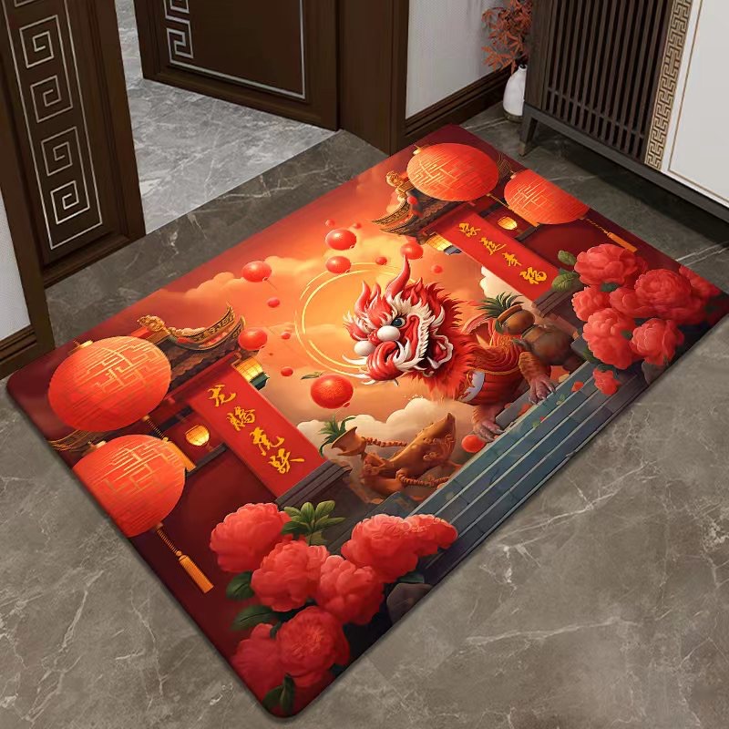 New Year Celebration Red Floor Mat Entry Door Doormat Dragon Year Carpet Hallway Home Bedroom Door Non-Slip Foot Mats