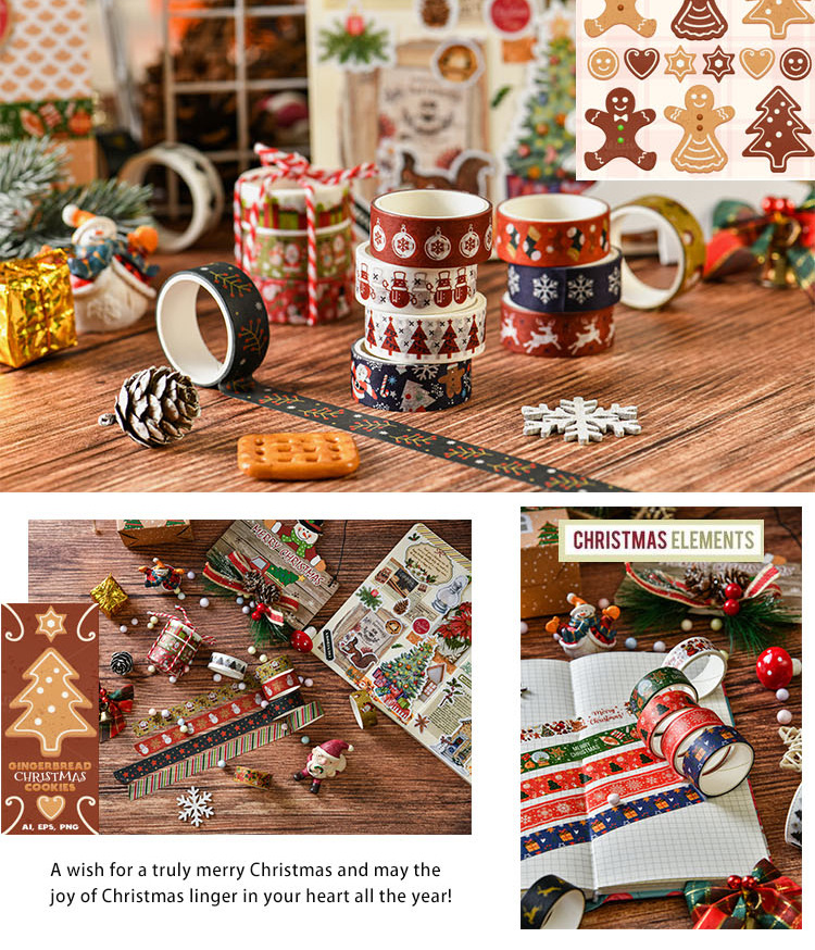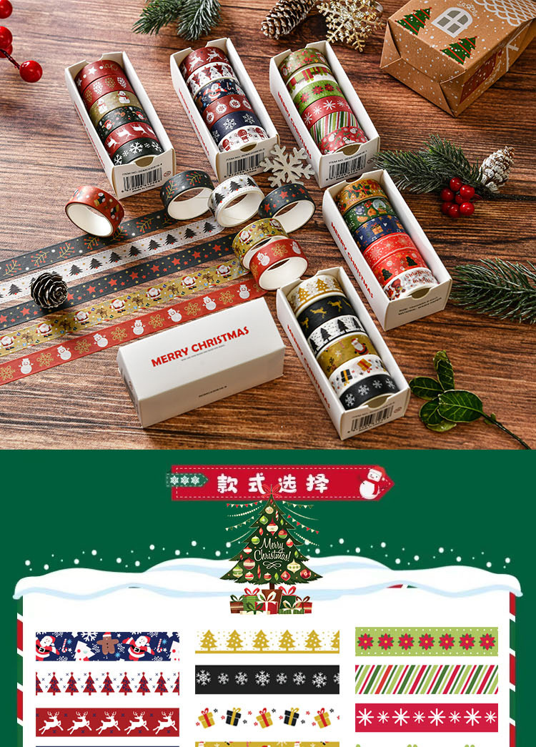 Creative Christmas Gift and Paper Adhesive Tape Journal Tape Christmas Decoration Material Cute Christmas Tape