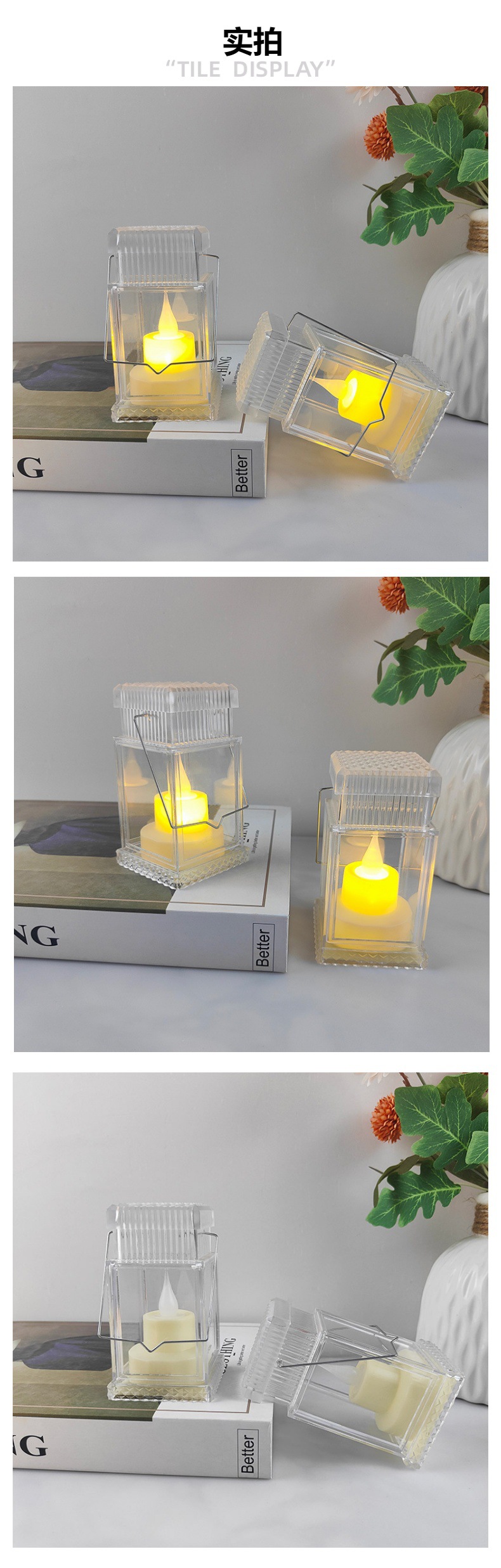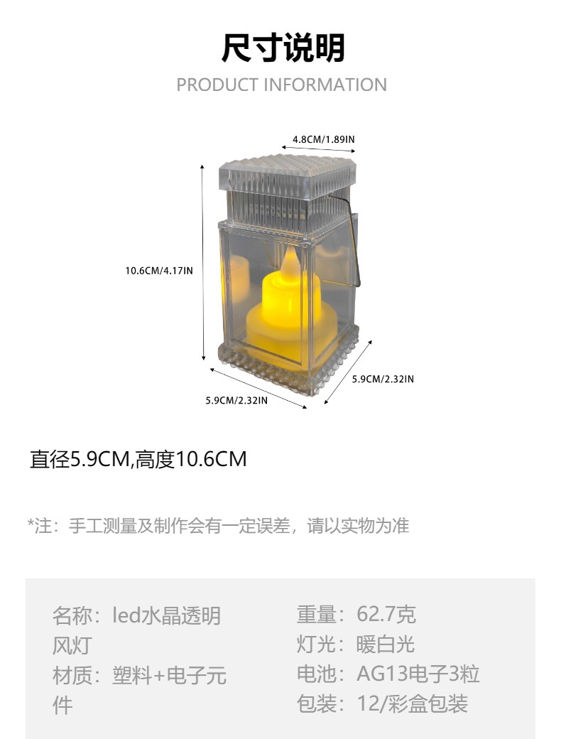 new creative crystal transparent small storm lantern portable luminous small night lamp smokeless electronic candle holiday decoration ornaments