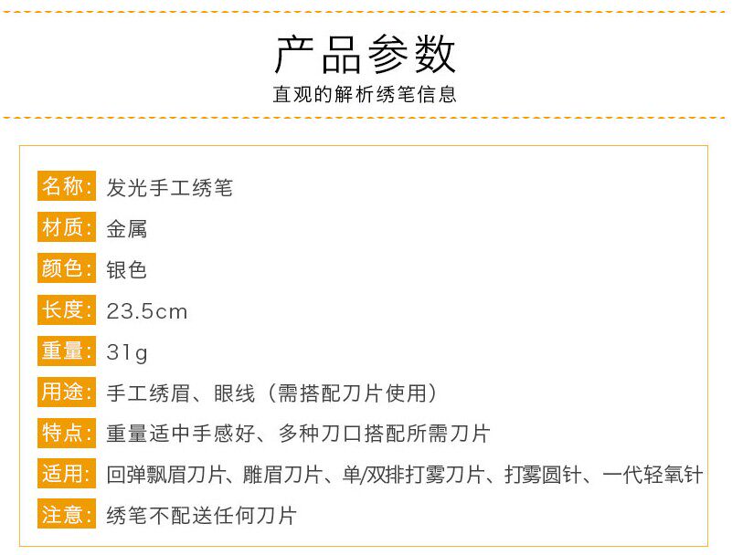 | luminous tattoo embroidery pen (without battery) | ¥0.0 | 99954 piece available |