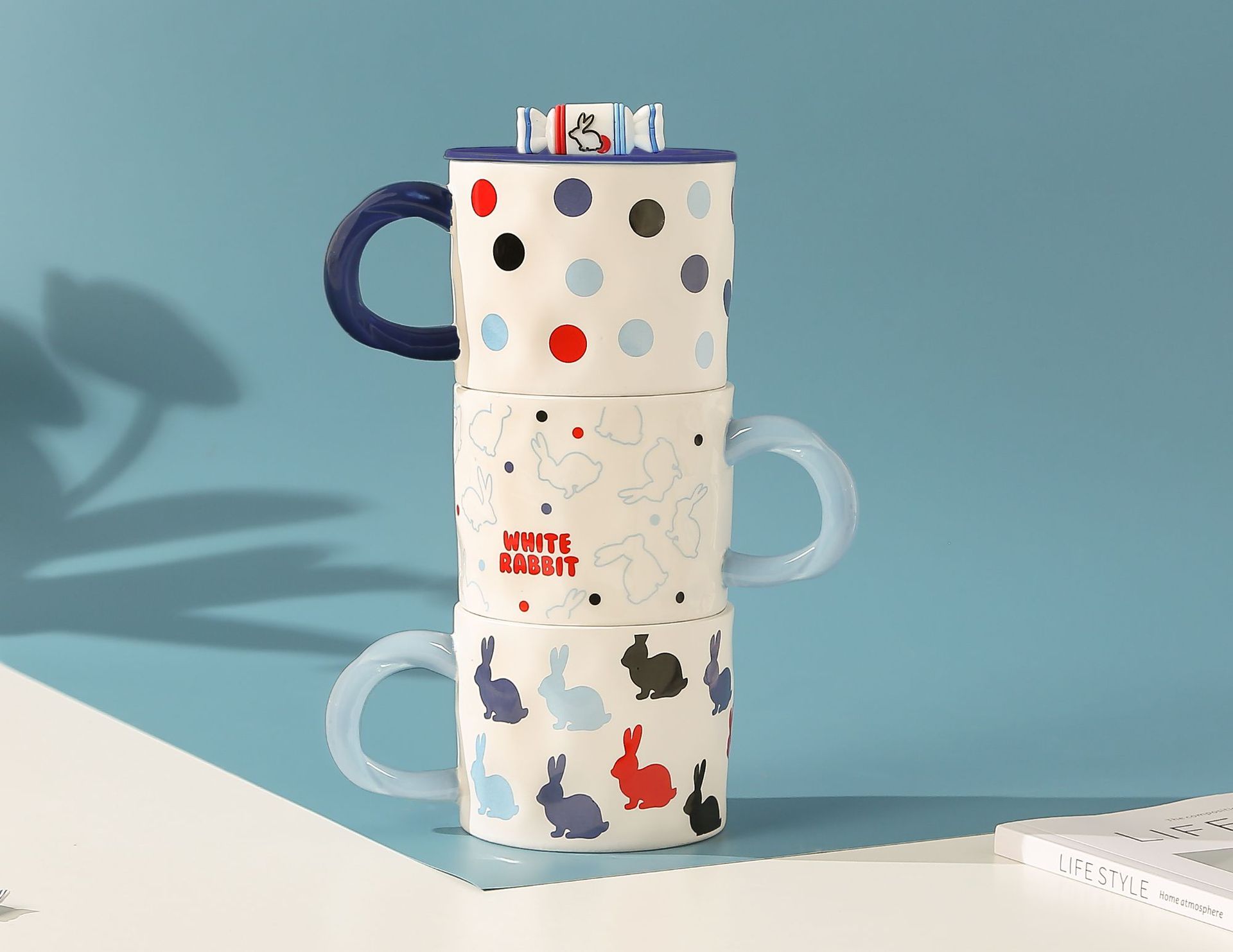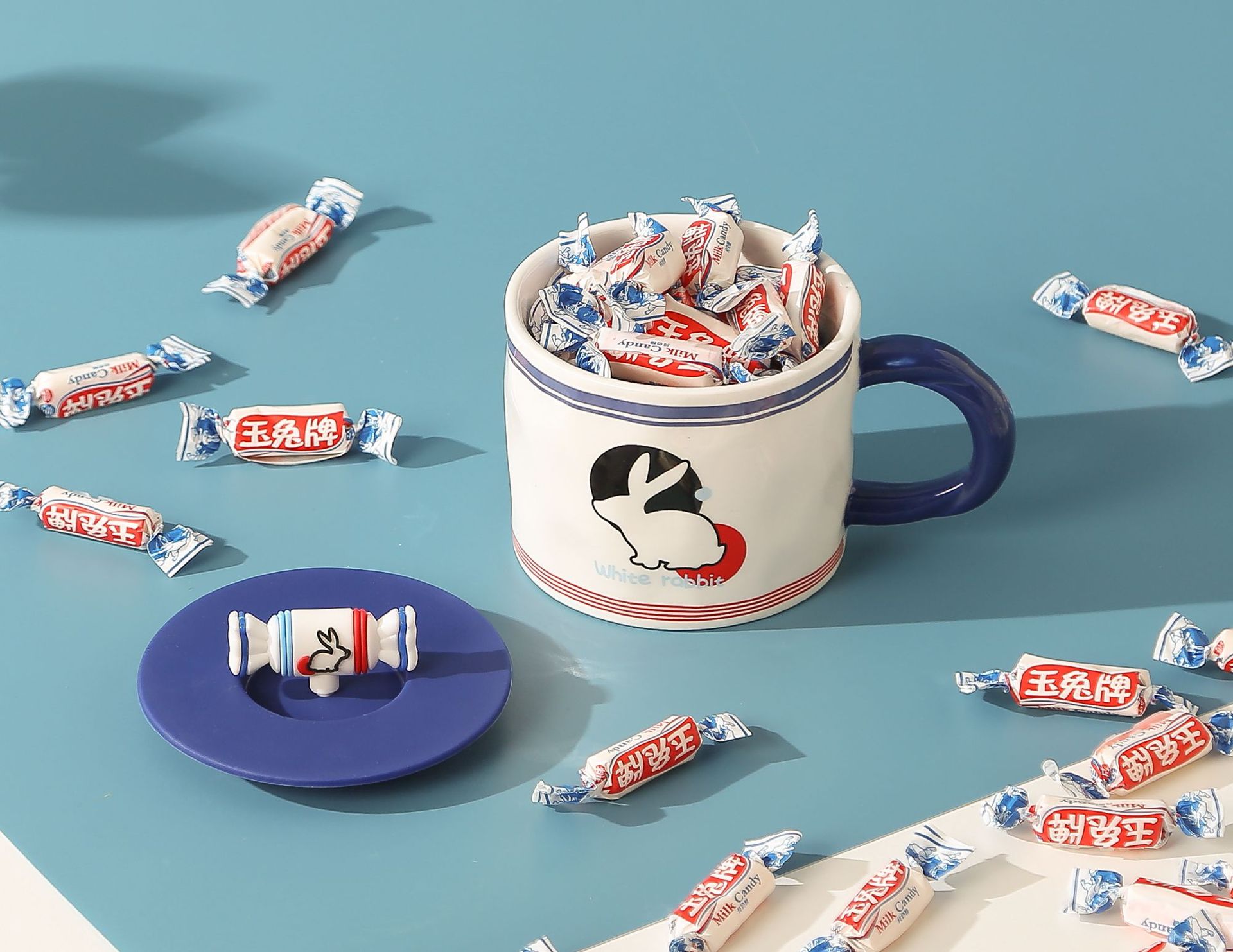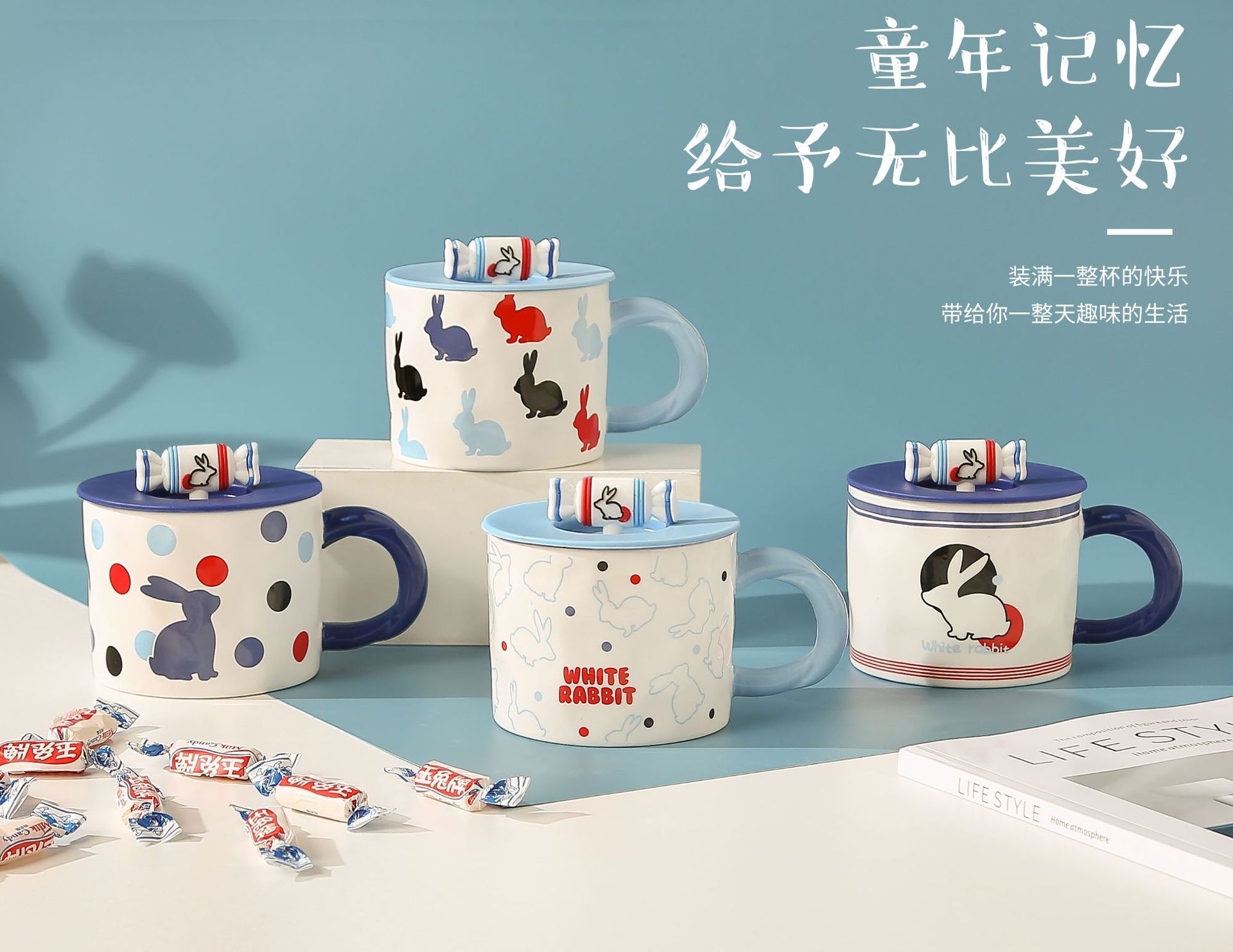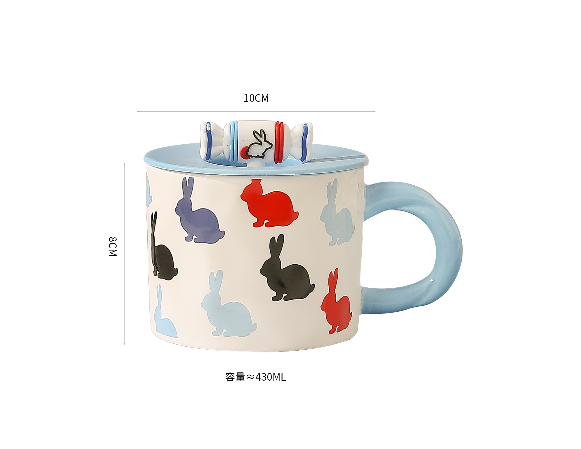 Household Good-looking Cartoon Cute White Rabbit Toffee Ceramic Mug Student Breakfast Cup Gift with Lid