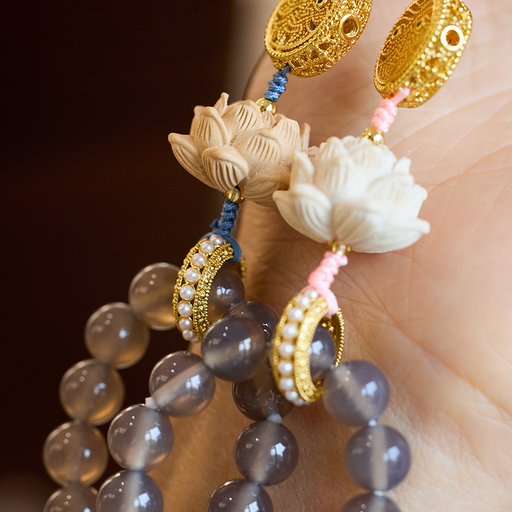 [gray blue] yellow god of wealth lotus agate mobile phone charm