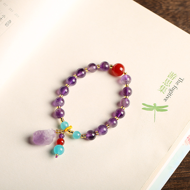 8mm amethyst round beads + raw ore pendant