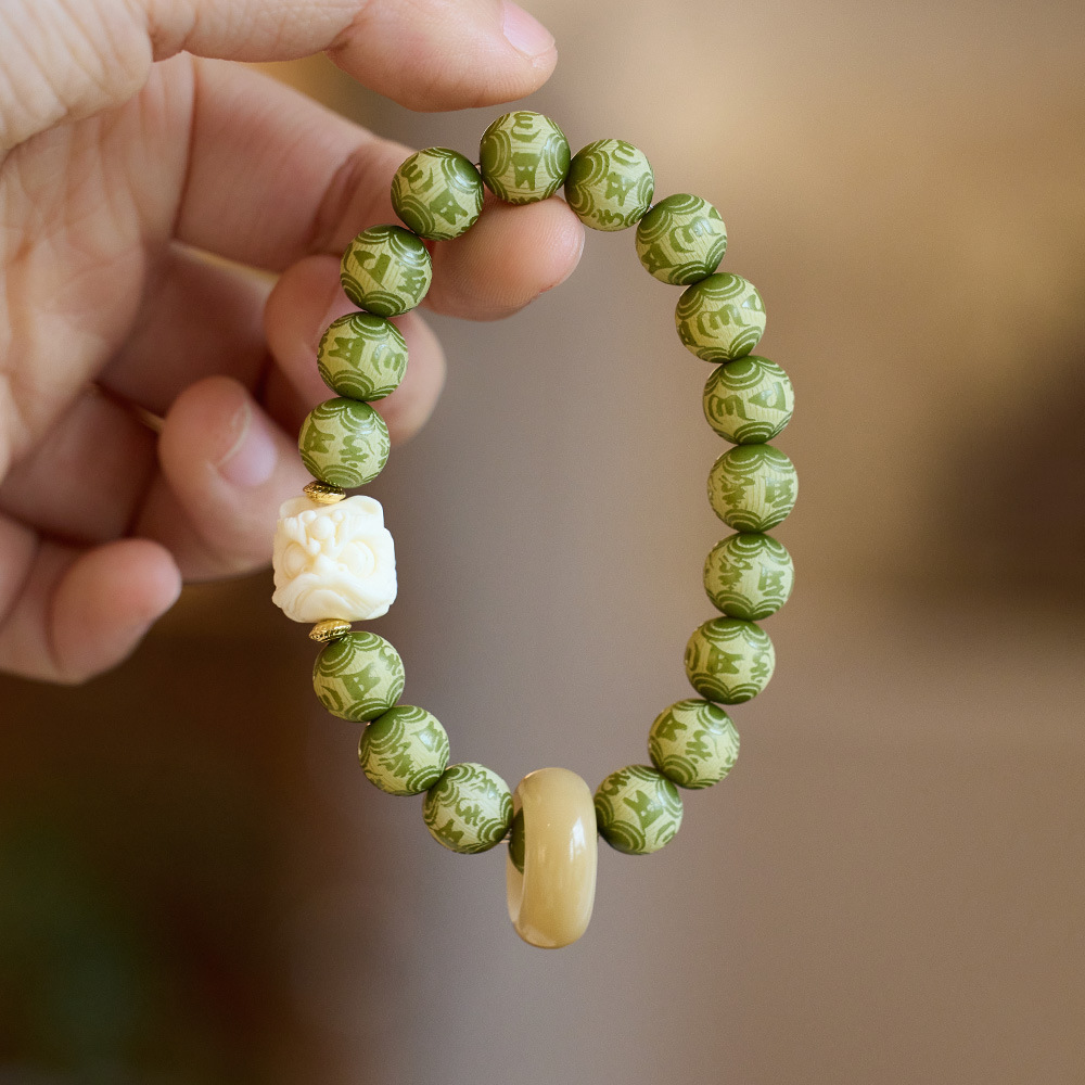 9mm green bodhi six words proverb charcoal burning lion flexible ring
