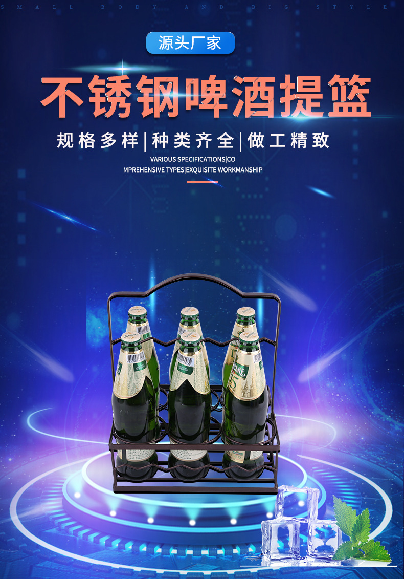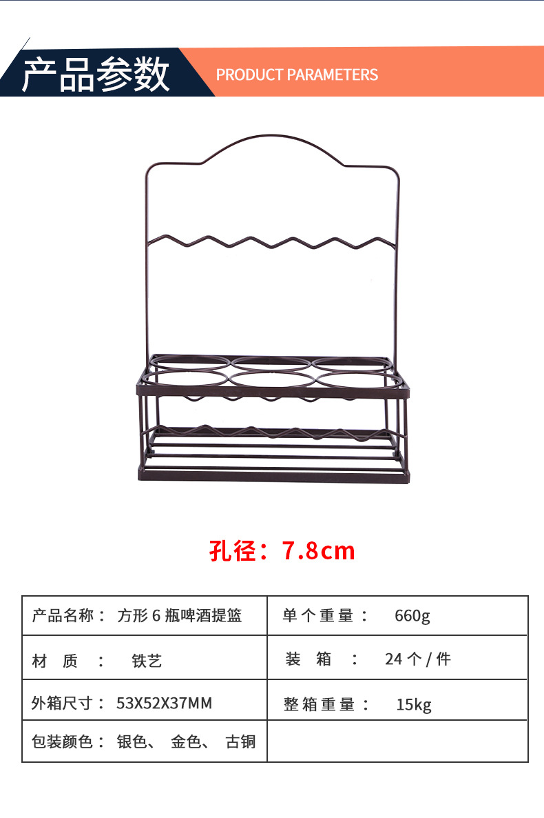 Wrought Iron Creative Stainless Steel Beer Wine Dipper Cabas Square 6-Hole Portable Beer Rack Cabas Bar Stainless Steel Wine Dipper Rack
