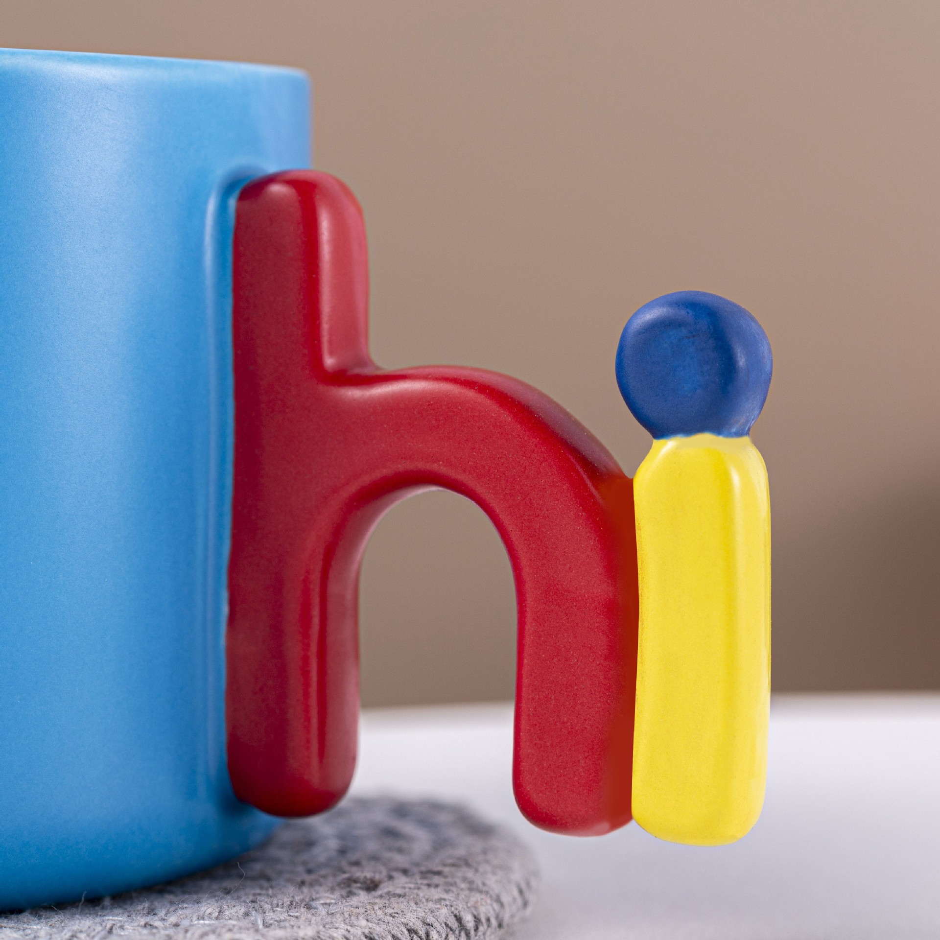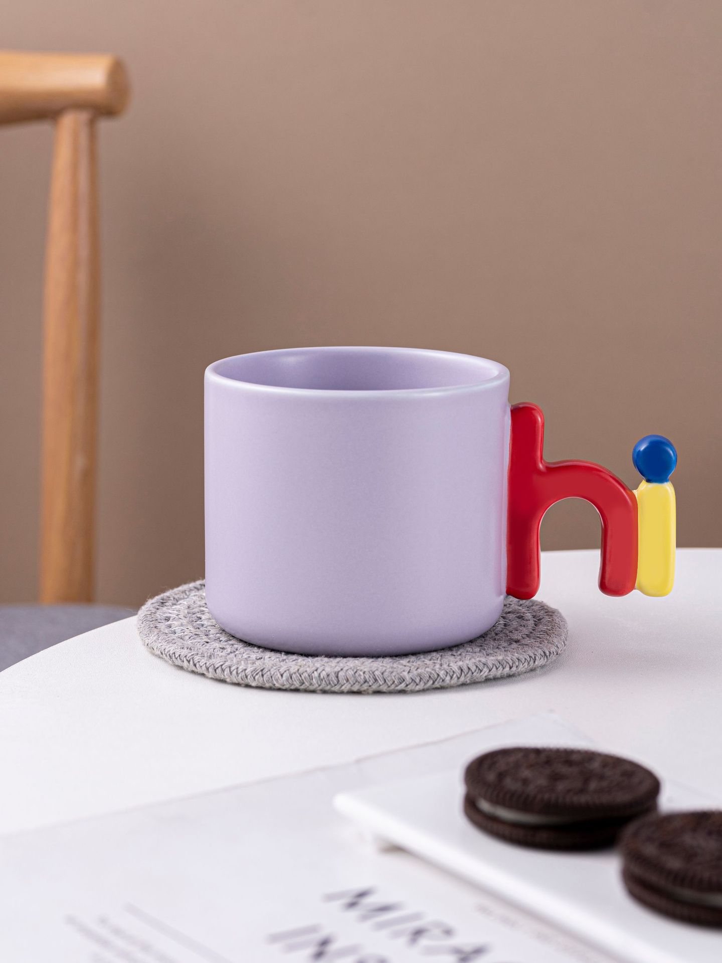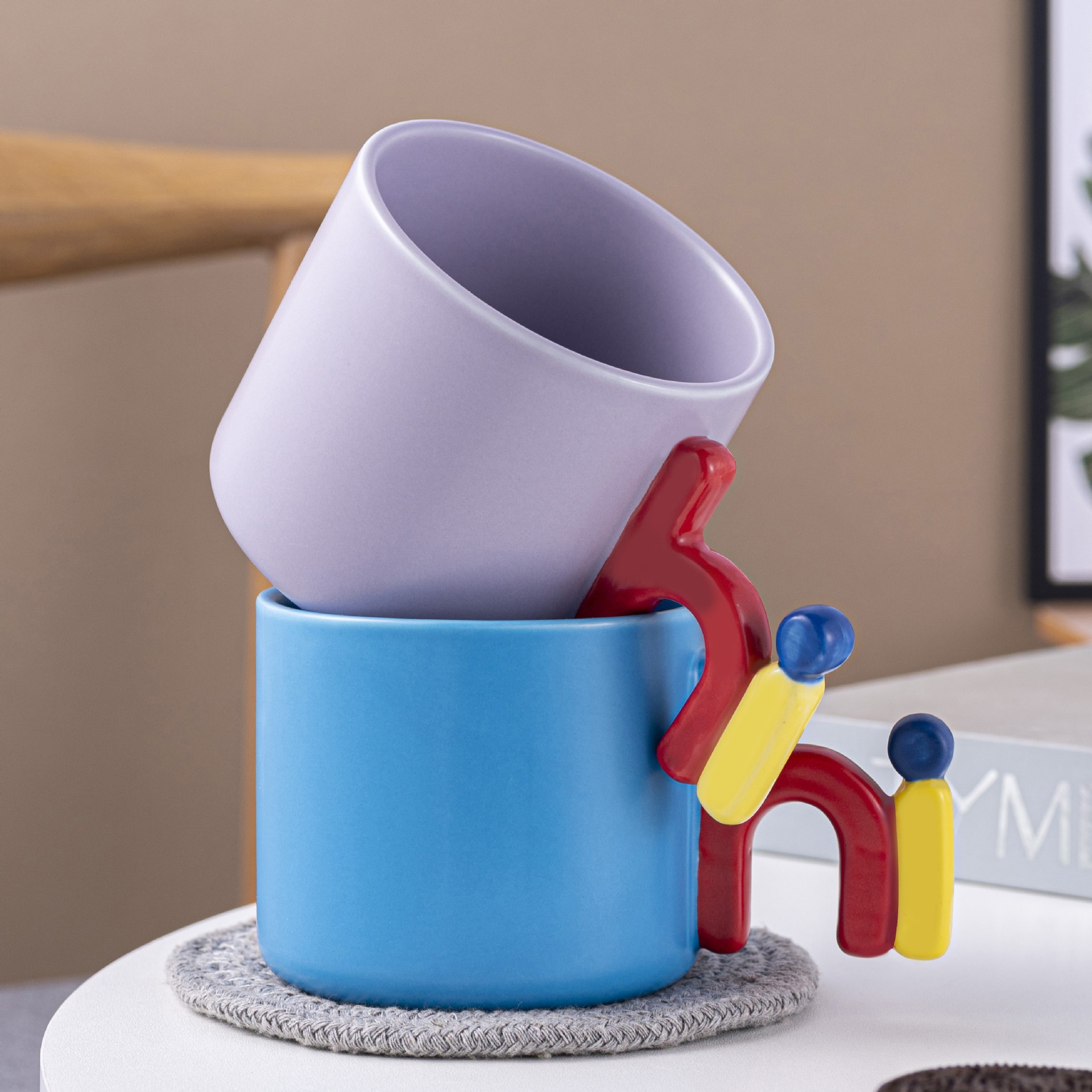 Creative Letters Handle Contrast Color Cup Simple High Sense Mug Home Office Ceramic Cup High Temperature Resistant Drinking Cup