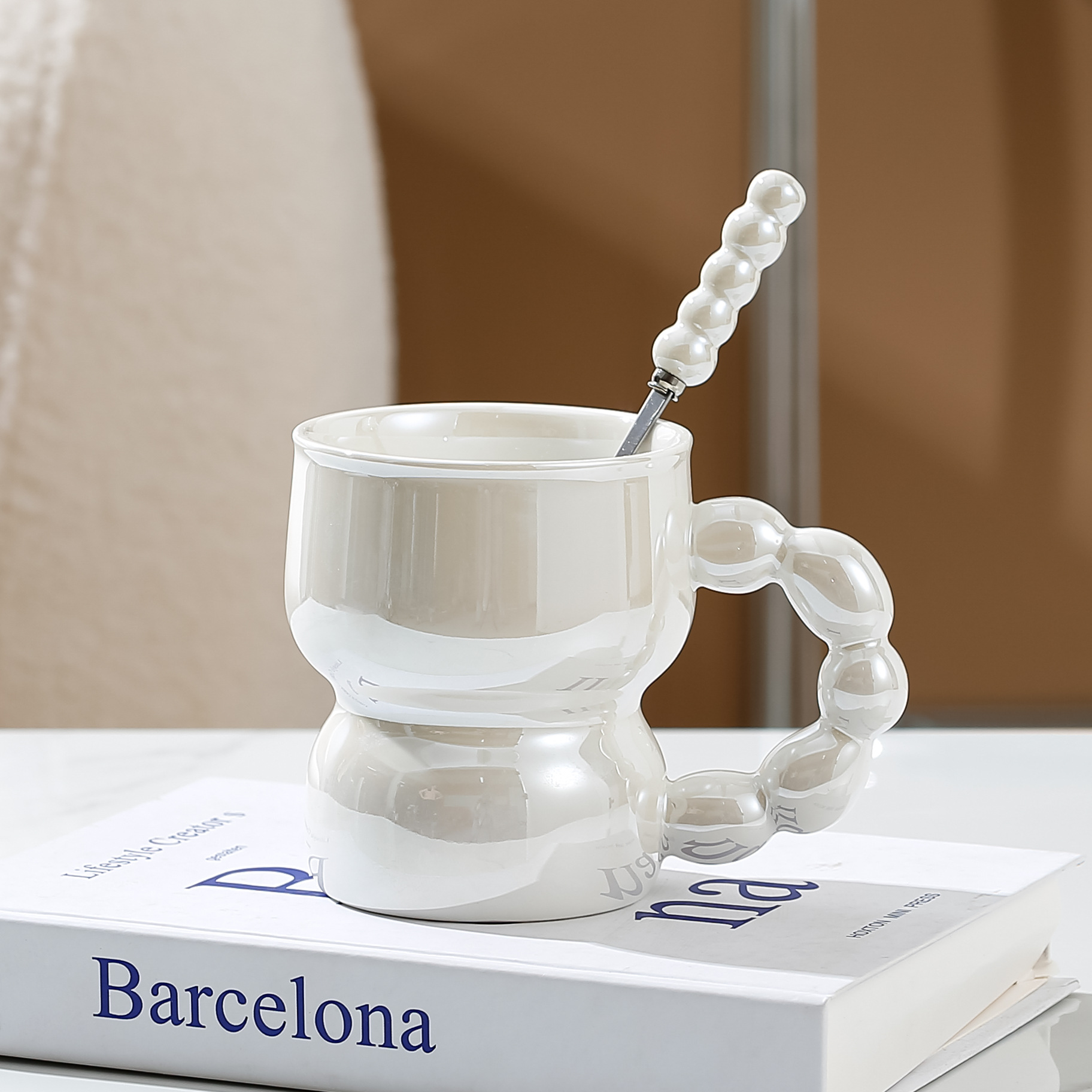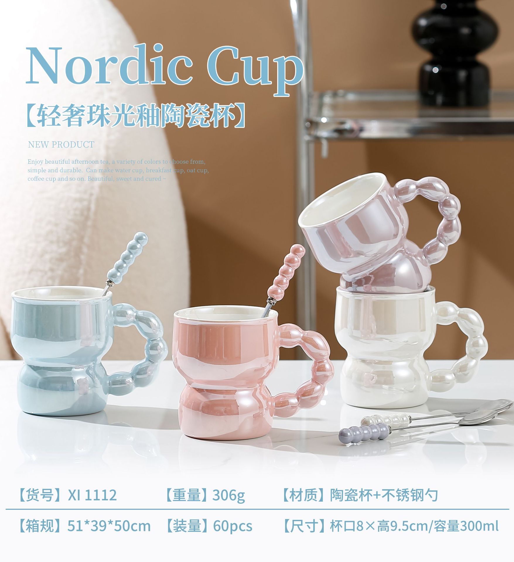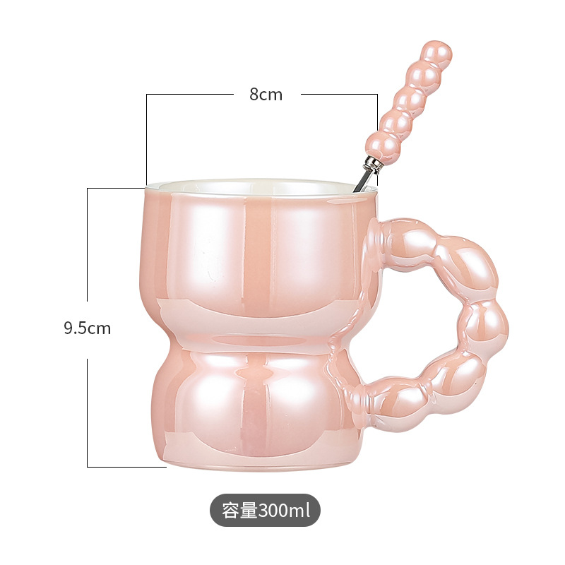 Household Good-looking Nordic Style Pearlescent Solid Color Ceramic Mug Student Dormitory Breakfast Milk Cup without Lid with Spoon