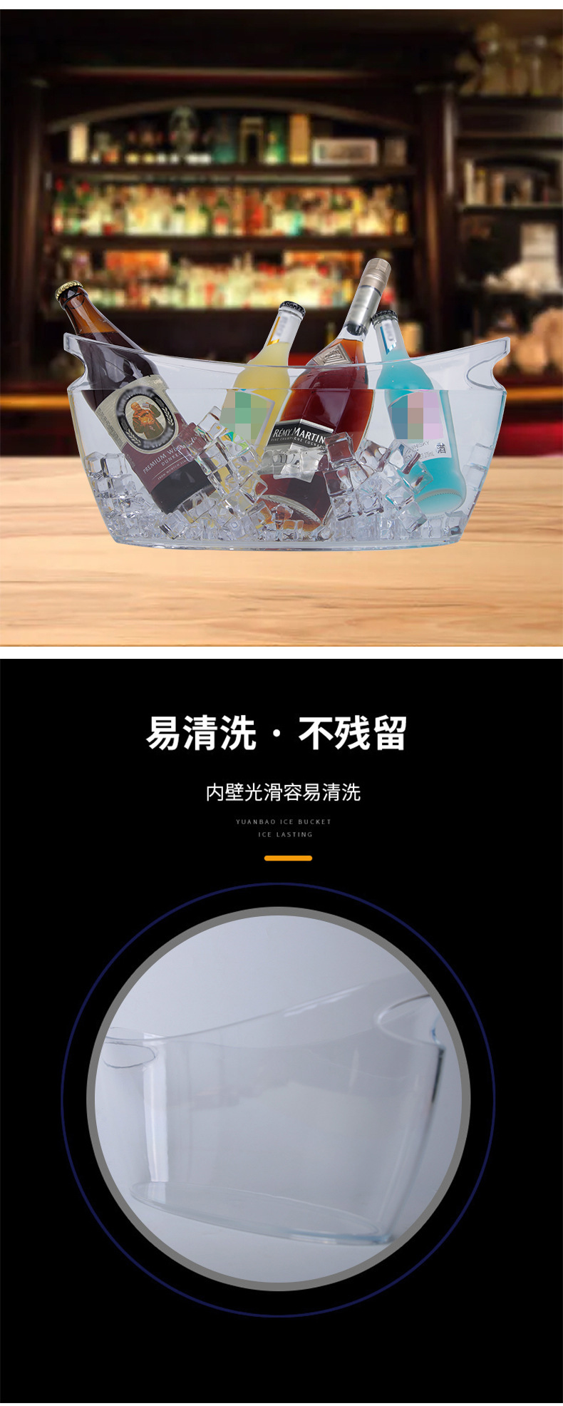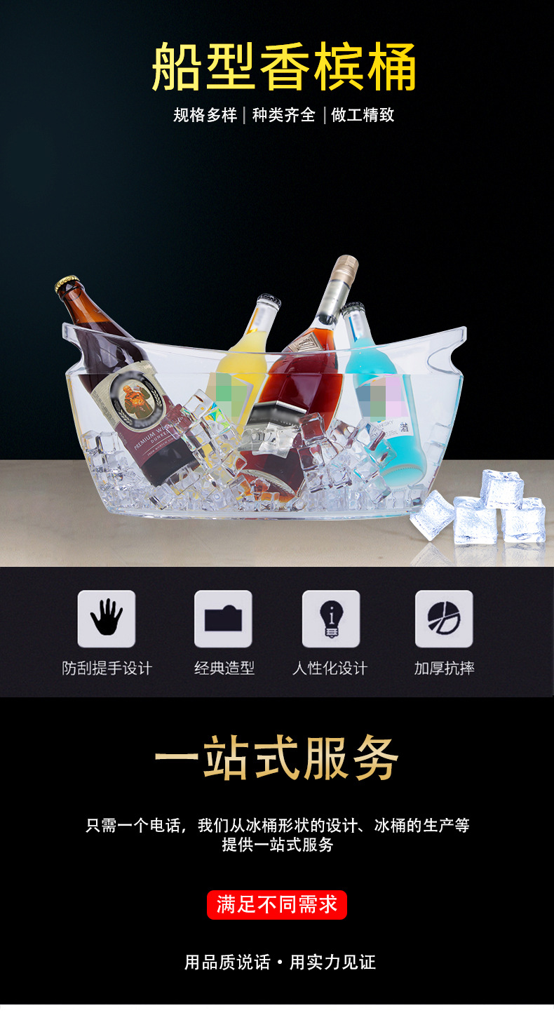 Factory Spot Plastic Transparent Boat Shape Champagne Bucket Flat Shape Cocktail Ice Bucket Ingot Ice Bucket PS Material Ice Bucket