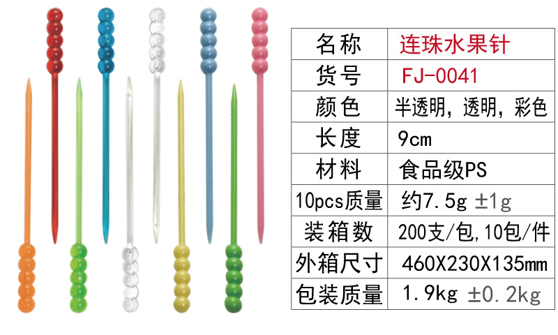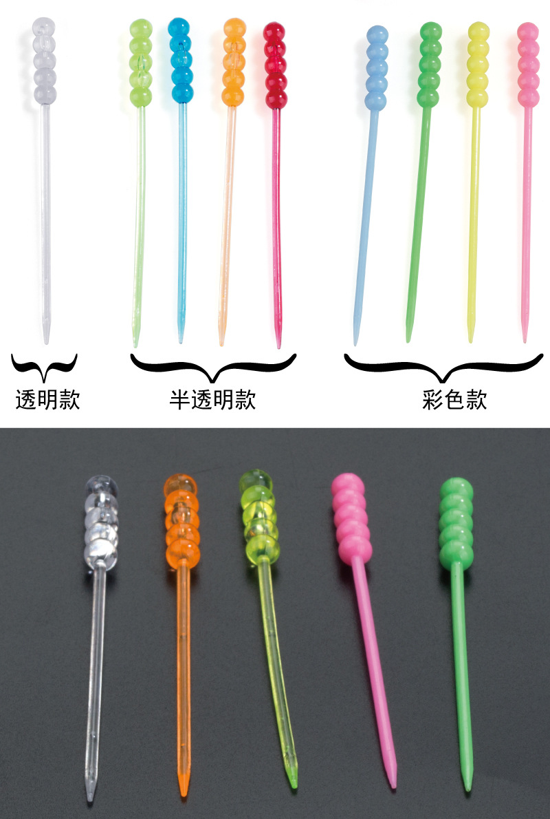 Factory in Stock Plastic Beaded Fruit Needle Transparent Beads for KTV Fruit Pin Bead-Shaped Fruit Fork Disposable Plastic Fruit Fork