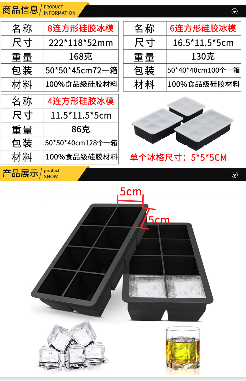 Silicone Ice Tray Creative DIY Square Silicone 6-Hole Ice Cube Mold Whiskey Ice Tray Chocolate with Lid Ice Box