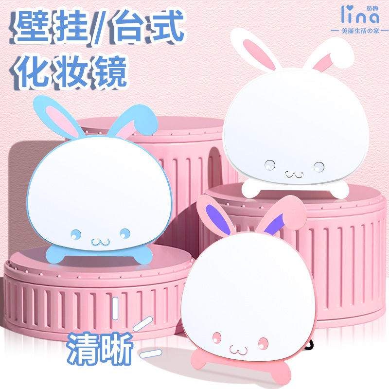 cartoon simple folding desktop makeup mirror desktop cute trumpet student dormitory creative portable vanity mirror rabbit