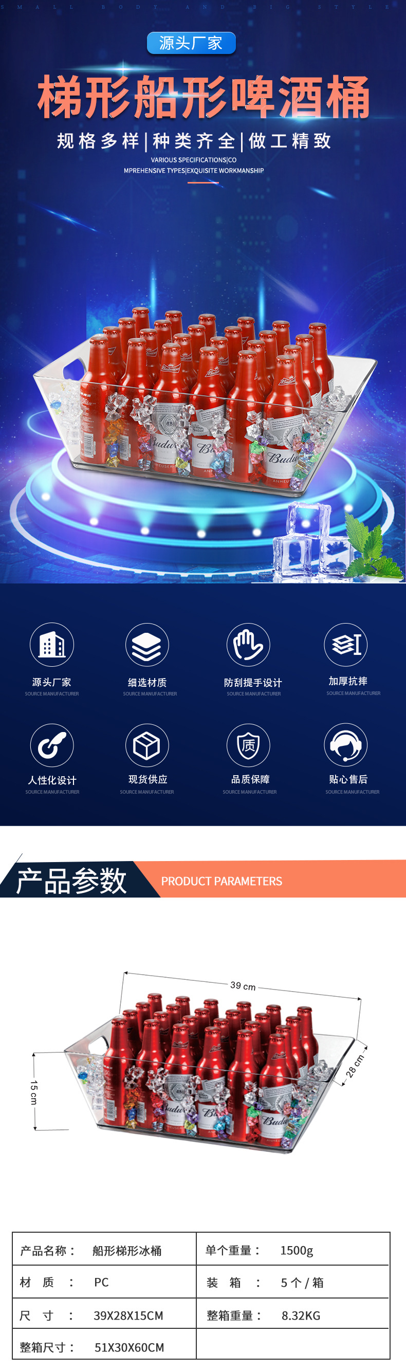Bar KTV Ice Bucket Creative Trapezoidal Portable Beer Barrel Pc Boat-Shaped 24 PCs Ice Tank Bar Supplies Wholesale