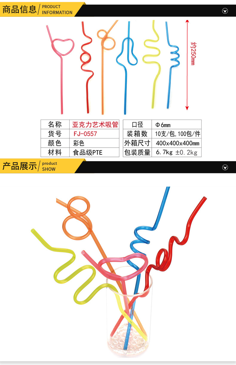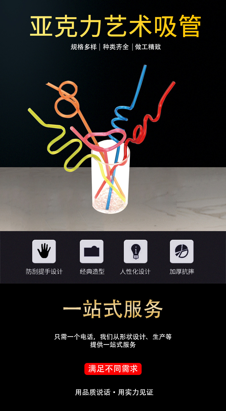 Acrylic Spot Drink Straw Repeated Use Shape Hardened Curved Shape Acrylic PTU Artistic Straw