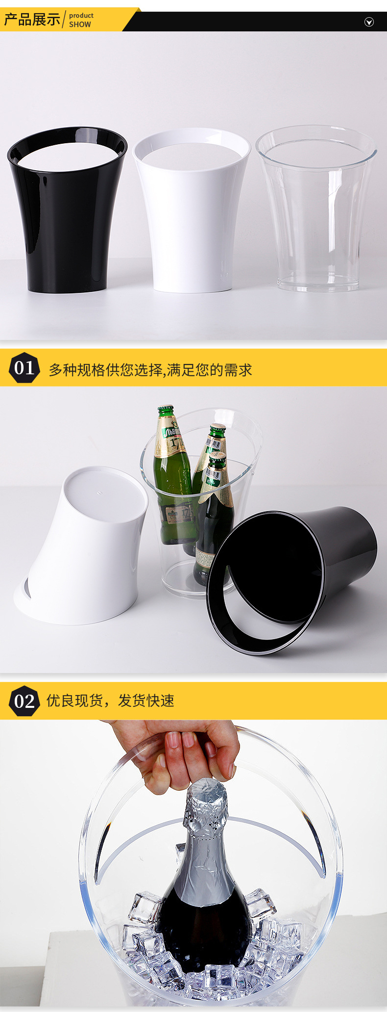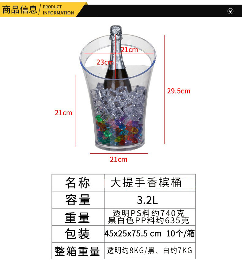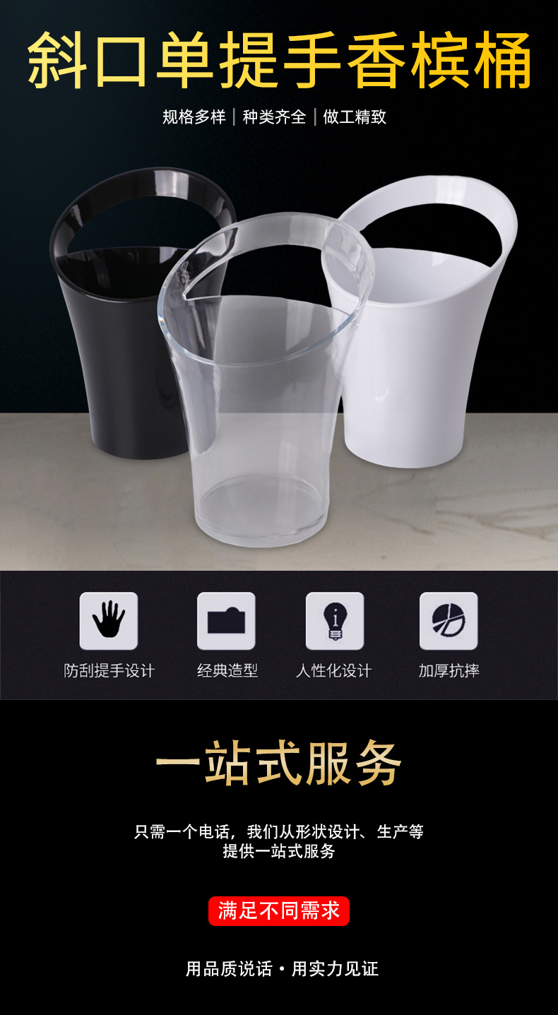 Spot Plastic Single Handle Champagne Bucket Bar Oblique Lifting Oblique Mouth Plastic Ice Bucket KTV Drop-Resistant Transparent Beer Barrel