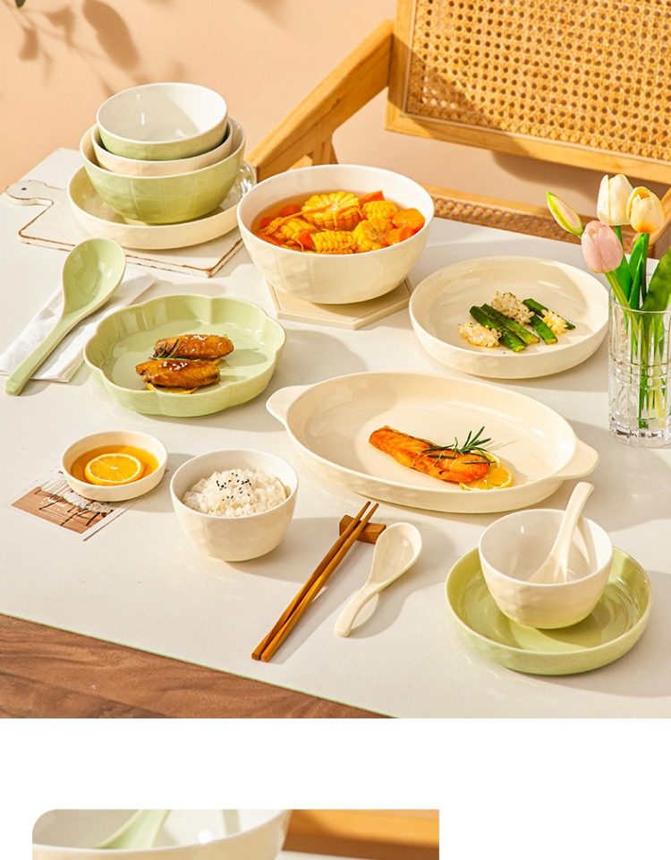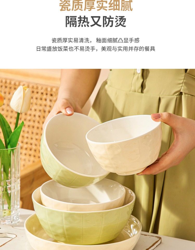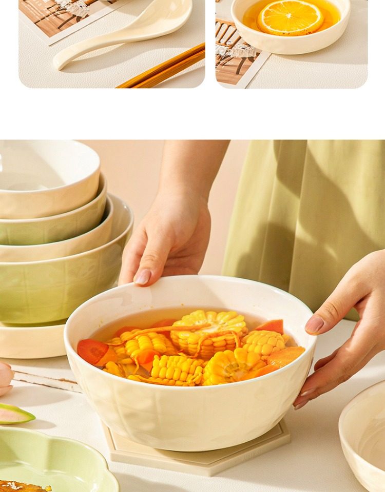 [cream style] 7 inch soup bowl-cream green