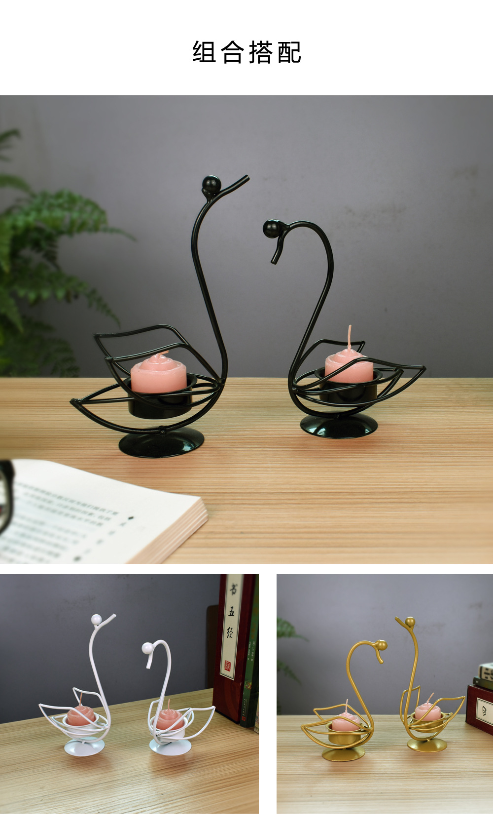 Nordic Style Simple Couple Swan Iron Crafts Romantic Candle Holder Wedding Atmosphere Ornaments