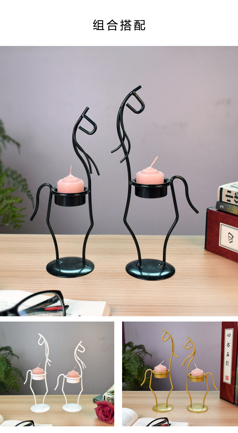 Metal Pony Light Luxury Animal Candle Holder Romantic Valentine's Day Party Atmosphere Decorative Ornaments