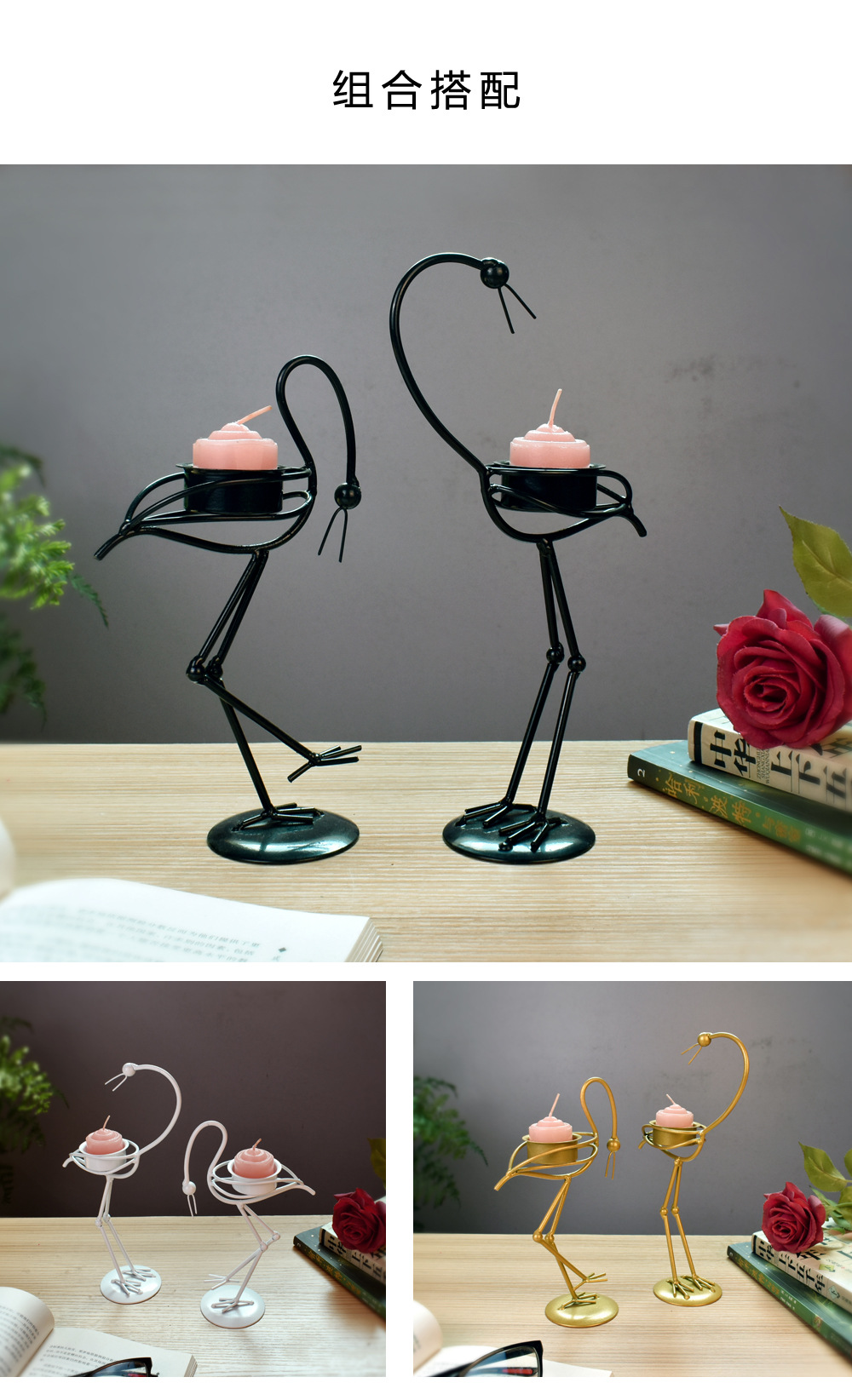 Modern Fashion Creative Crane Craft Candlestick Set Western Restaurant Hotel Decoration Festival Gift