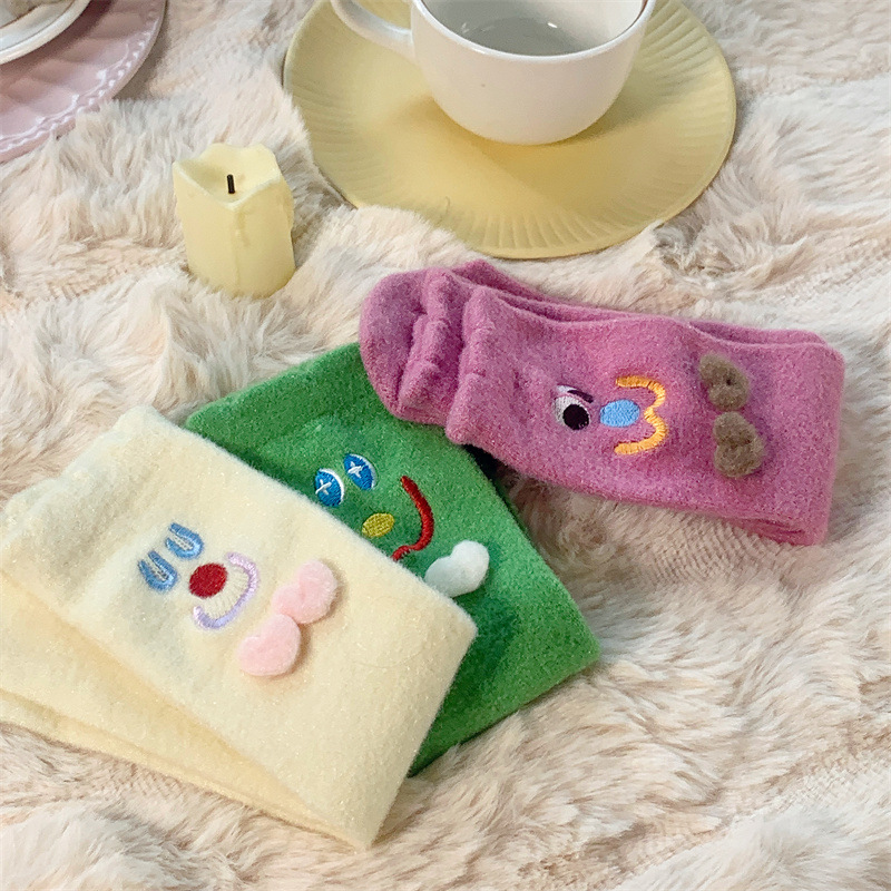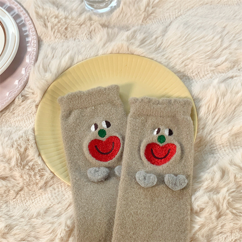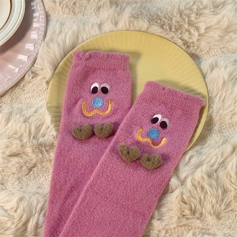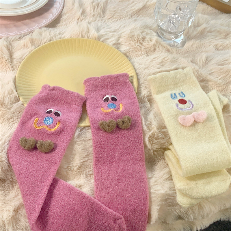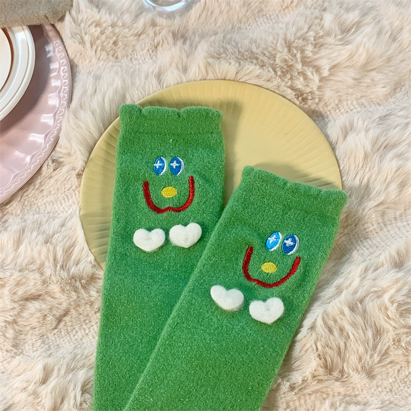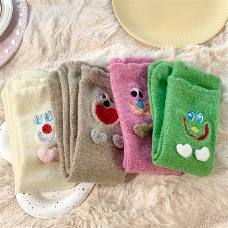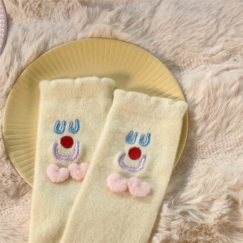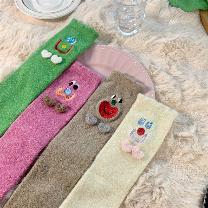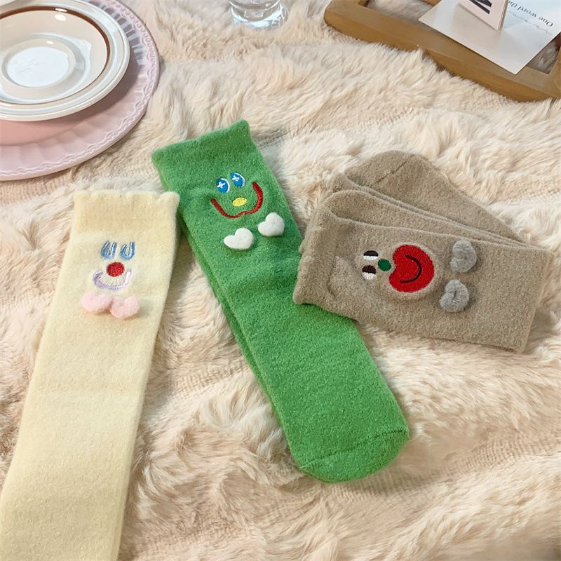 Autumn and Winter Two Children Tube Socks Crystal Yarn Three-Dimensional Smiling Face Room Socks Cute Japanese Style Home Sleeping Socks