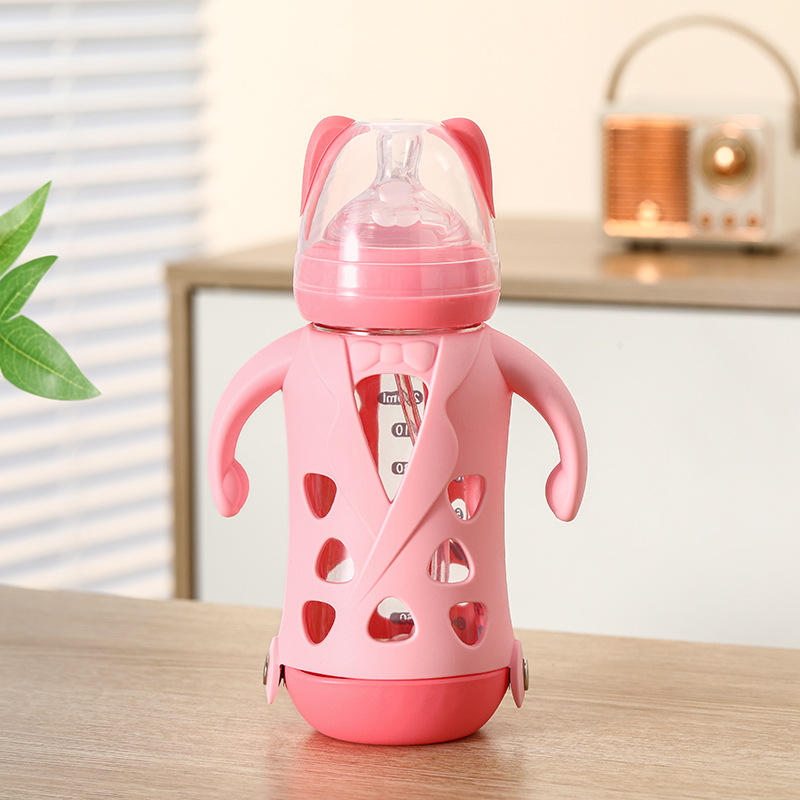 240ml pink glass feeding bottle