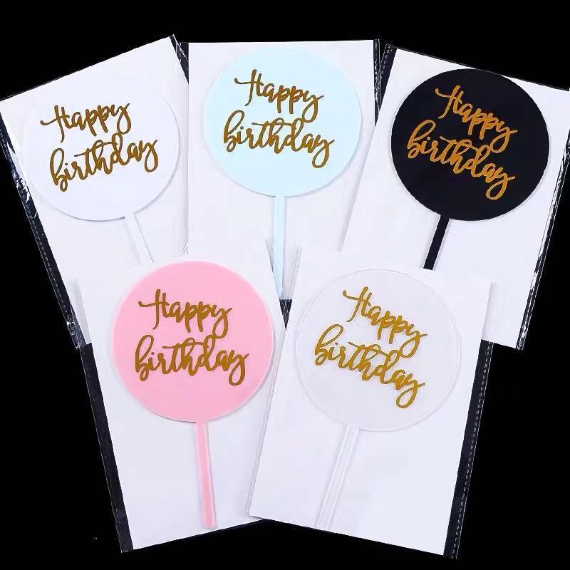 round acrylic birthday insertion happy cake decorative insertion minimalist creative bronzing cake decoration card