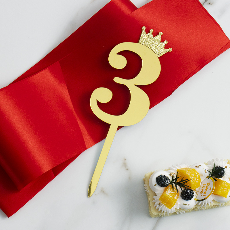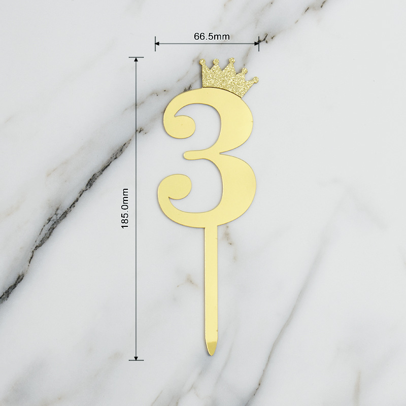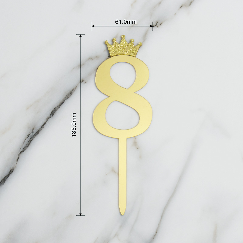 Product Basic Information: Product Name: Large Independent Packaged Crown Number Acrylic Cake Insert with Numbers 0-9 Product Material: Acrylic Material Thickness: Solid Thickness 1.1mm Product Color: Gold Product Unit: 1PC