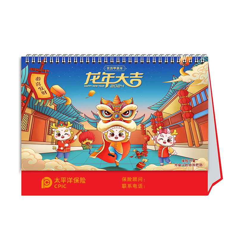 2024 Dragon Year Insurance Company Advertising Desk Calendar Business Gift Calendar Xinhuatai Ping An Life Insurance Desktop Calendar